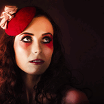 Dramatic Fashion Photo Of A Beautiful Brunette Woman Wearing Elegant Makeup And Spring Carnival Fascinator With Beautiful Red Makeup And Creative Hair...[+]