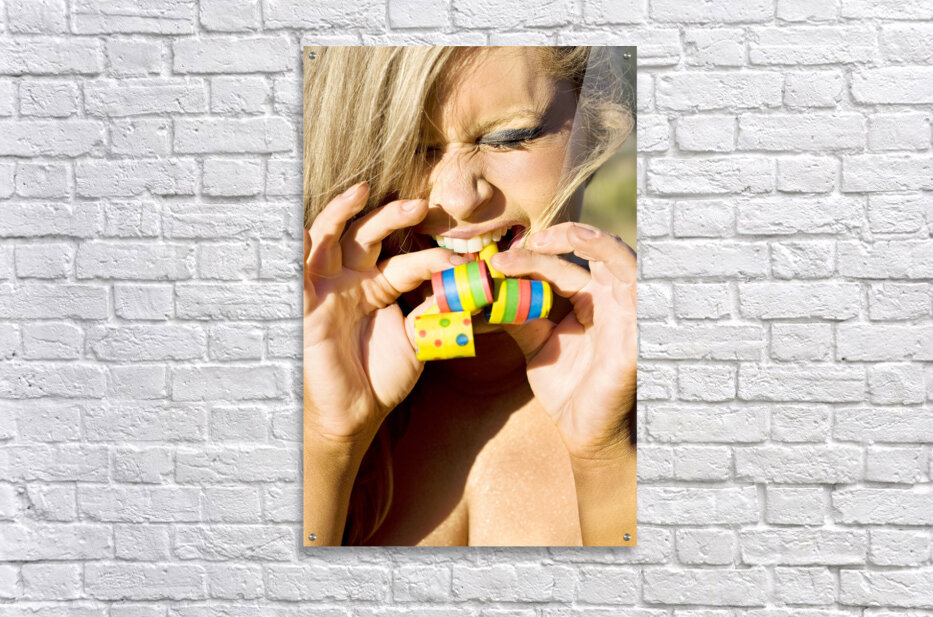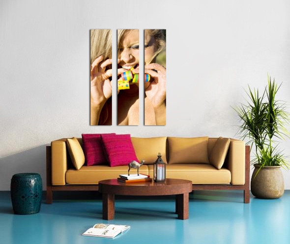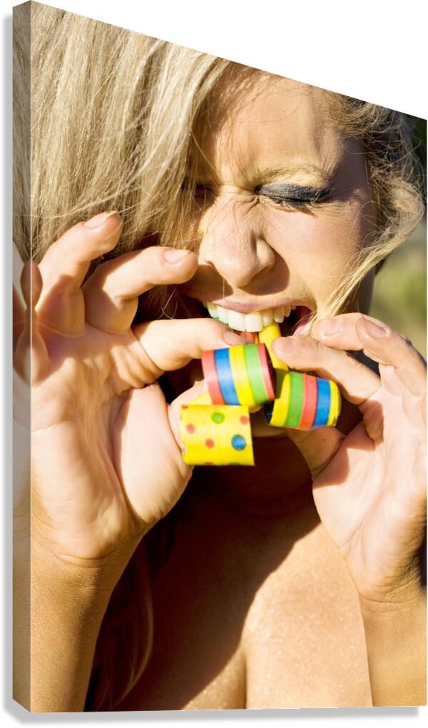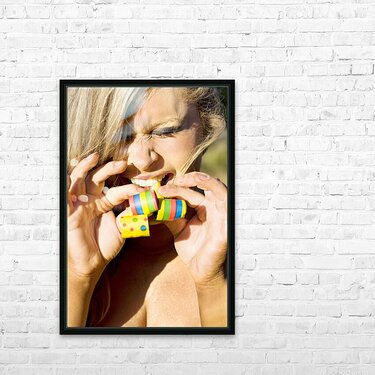 Get this artwork "Woman Blowing Party Horns" in a framed print.