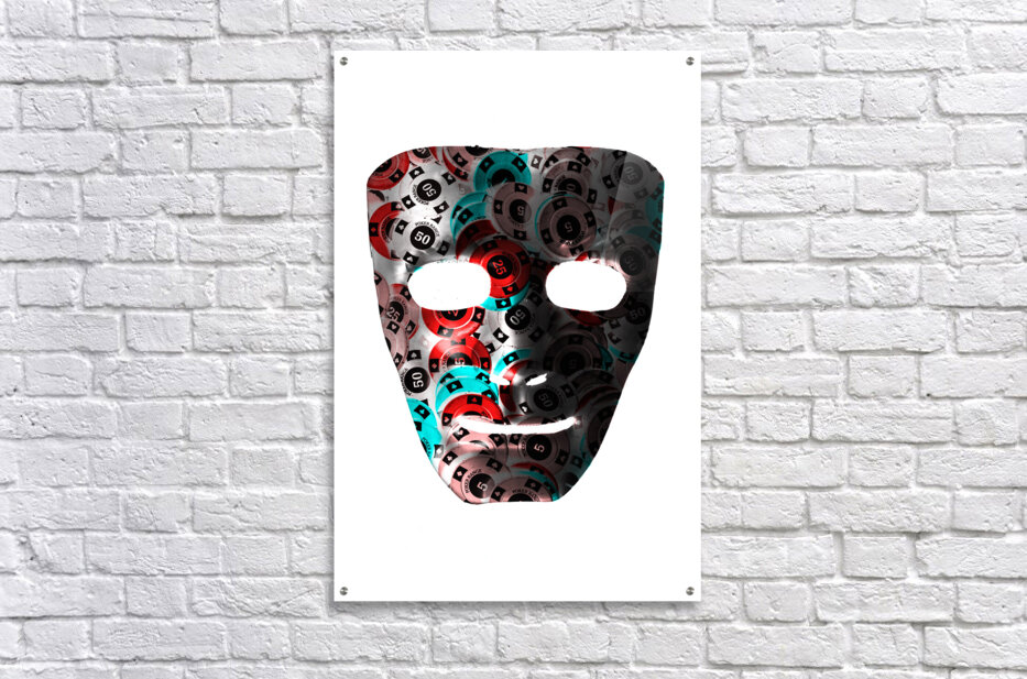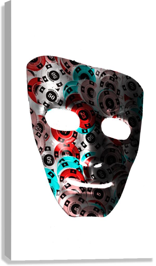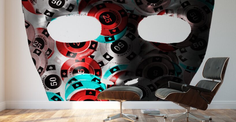 Fine art in table gaming with the mask of a poker face on stacks of winning chips