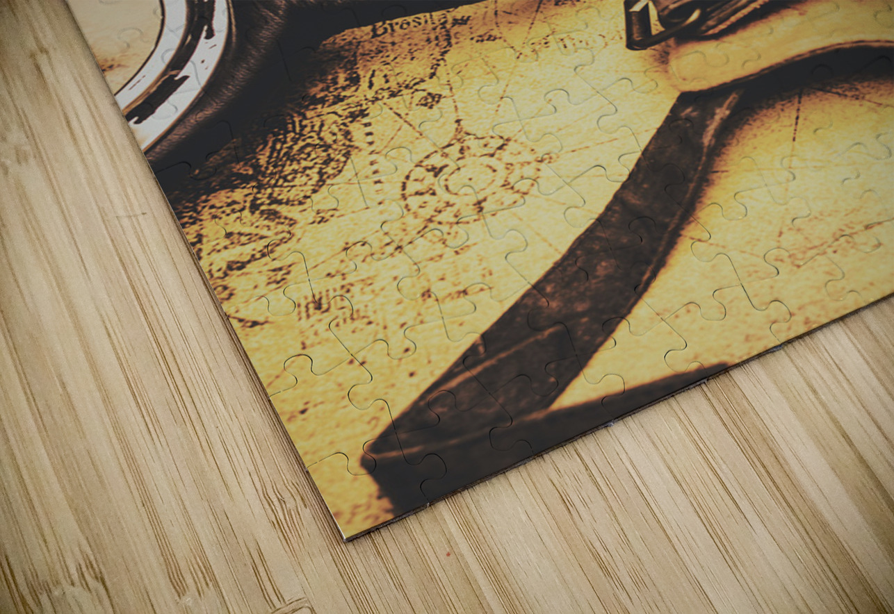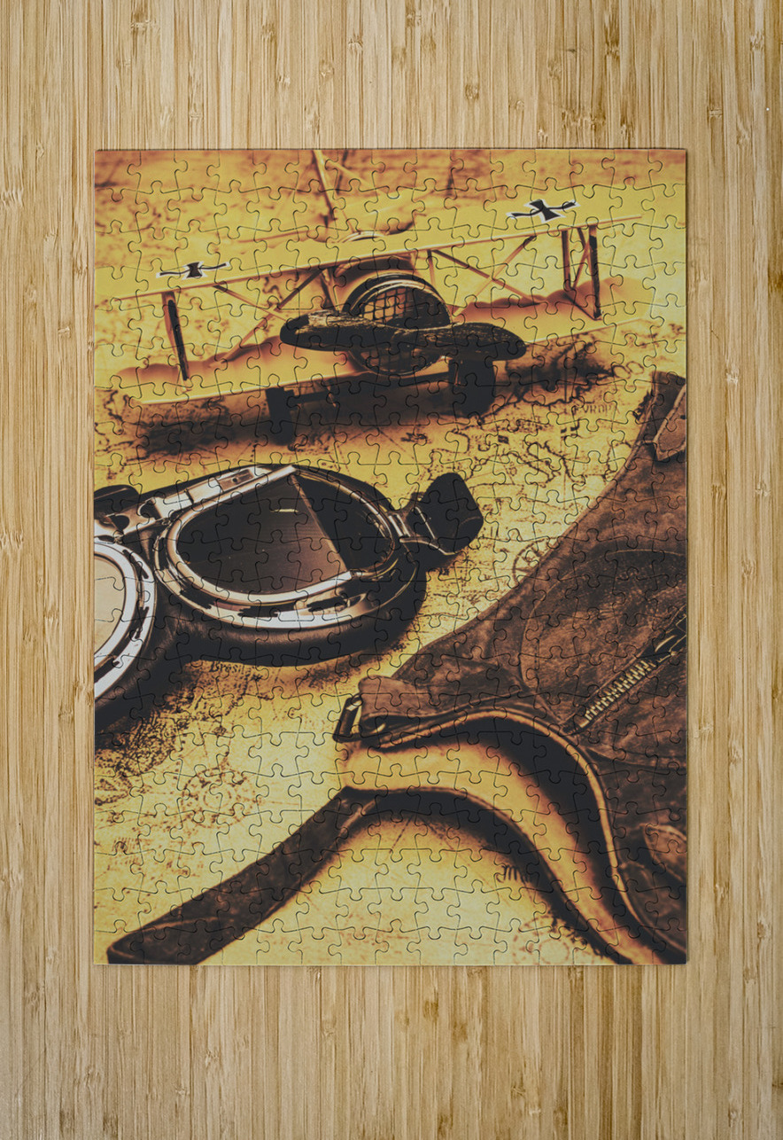 Aviator goggles cap and airplane on old world map Jorgo Puzzle printing