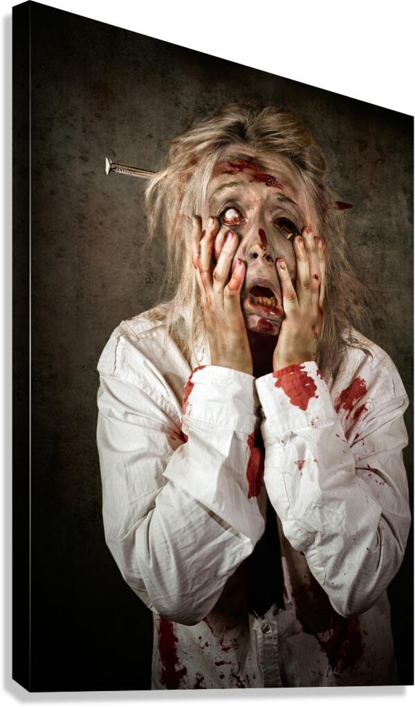 ABOUT THIS ARTWORK: SHOCK HORROR. SURPRISED BUSINESSWOMAN ZOMBIE