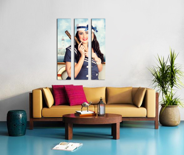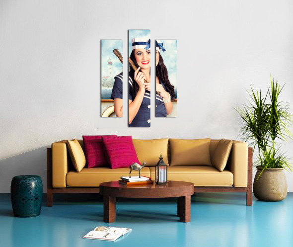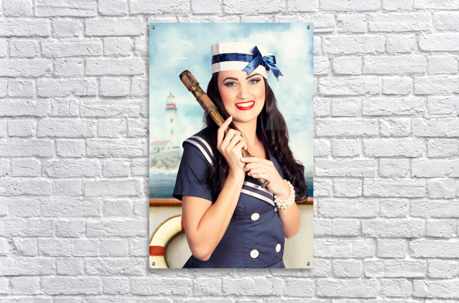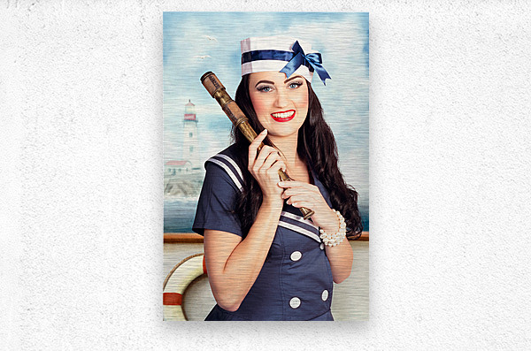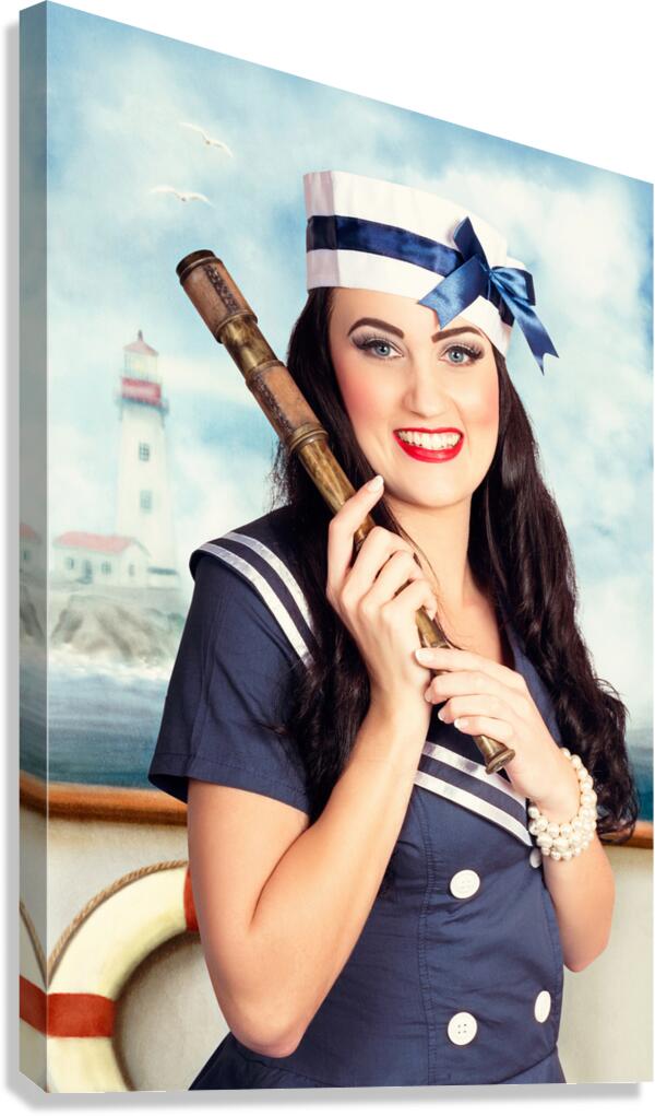 Get this artwork "Smiling young pinup sailor girl. Sea search and rescue" in a framed print.