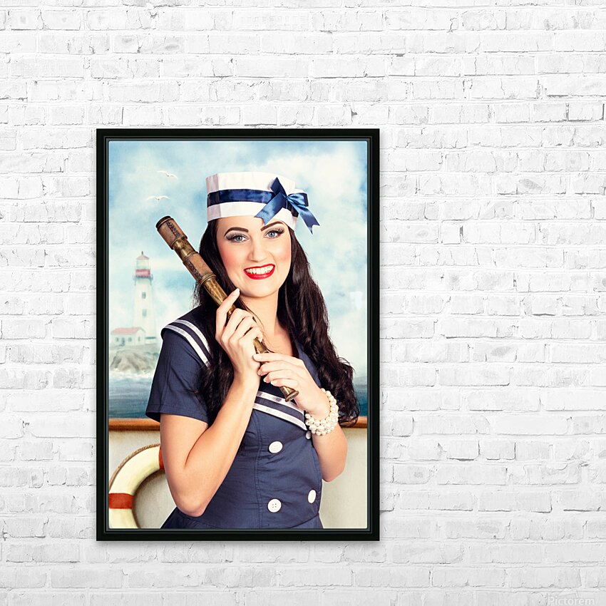 Smiling young pinup sailor girl. Sea search and rescue Picture Frame Printing