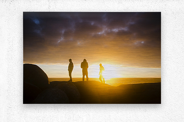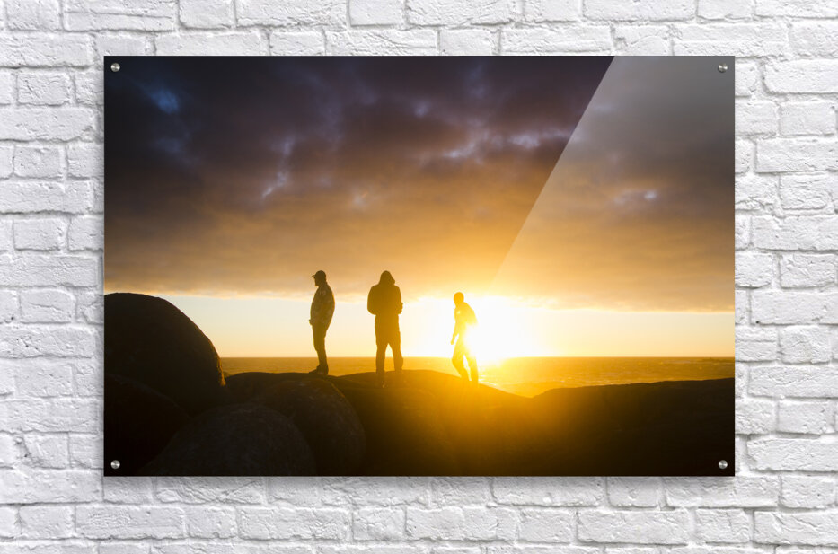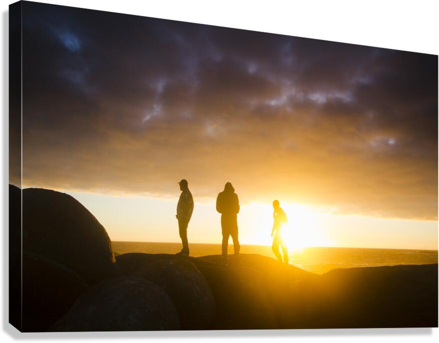 Three Australian travellers basking in the glow of a late afternoon ocean sunset. Taken Granville Harbour Tasmania
