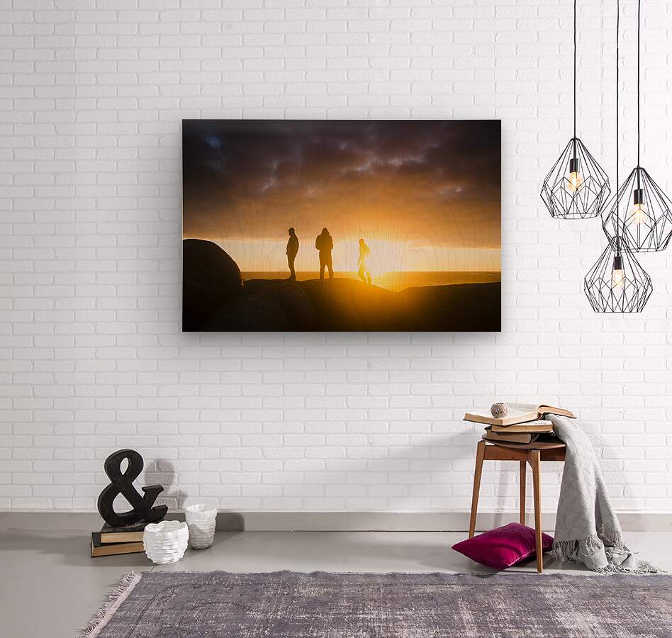 Three Australian travellers basking in the glow of a late afternoon ocean sunset. Taken Granville Harbour Tasmania