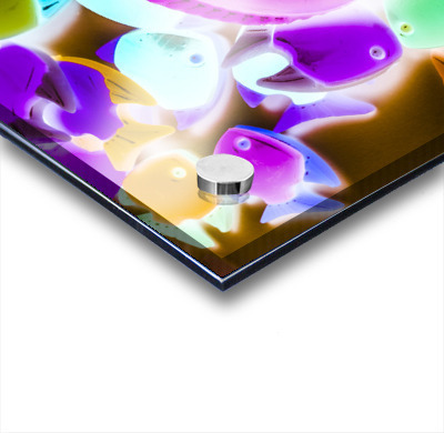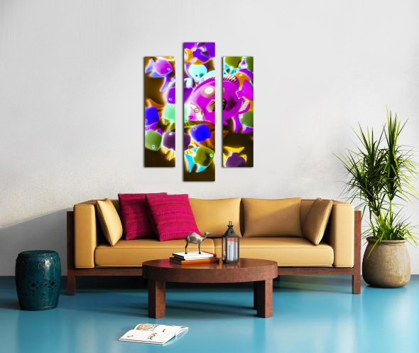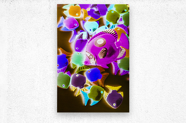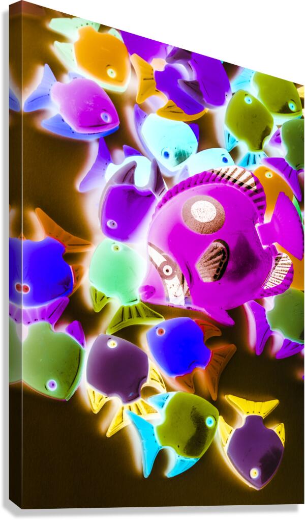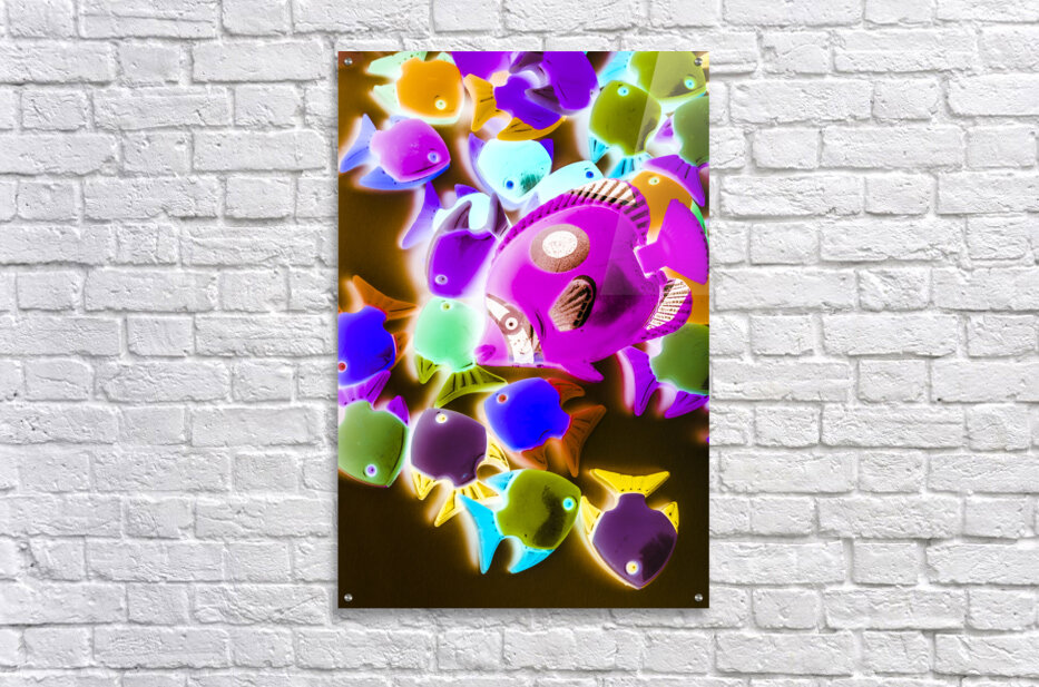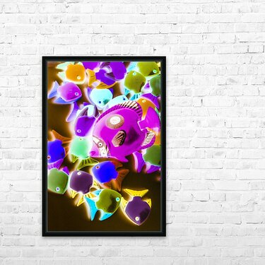 A reef of fun fluorescent fish swimming in colourful creative pop art. Finding neon