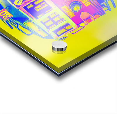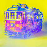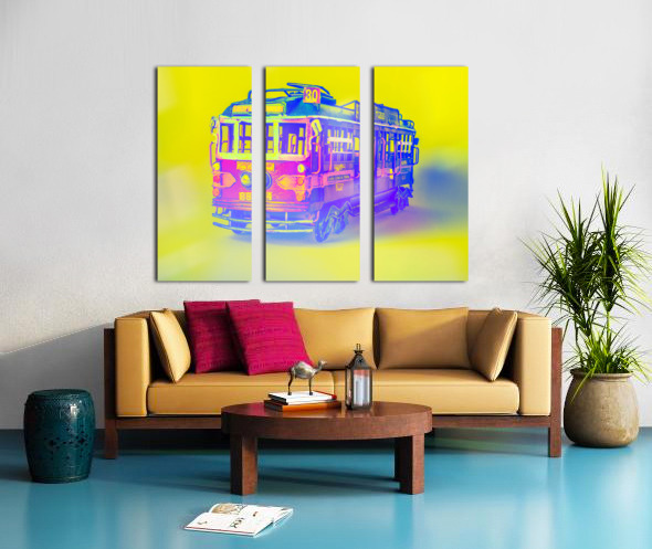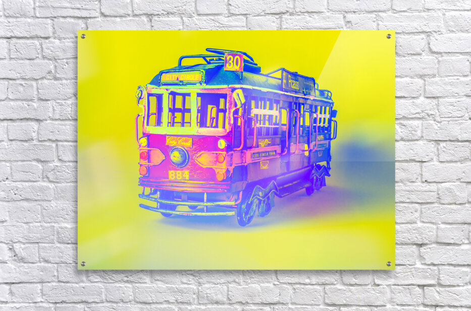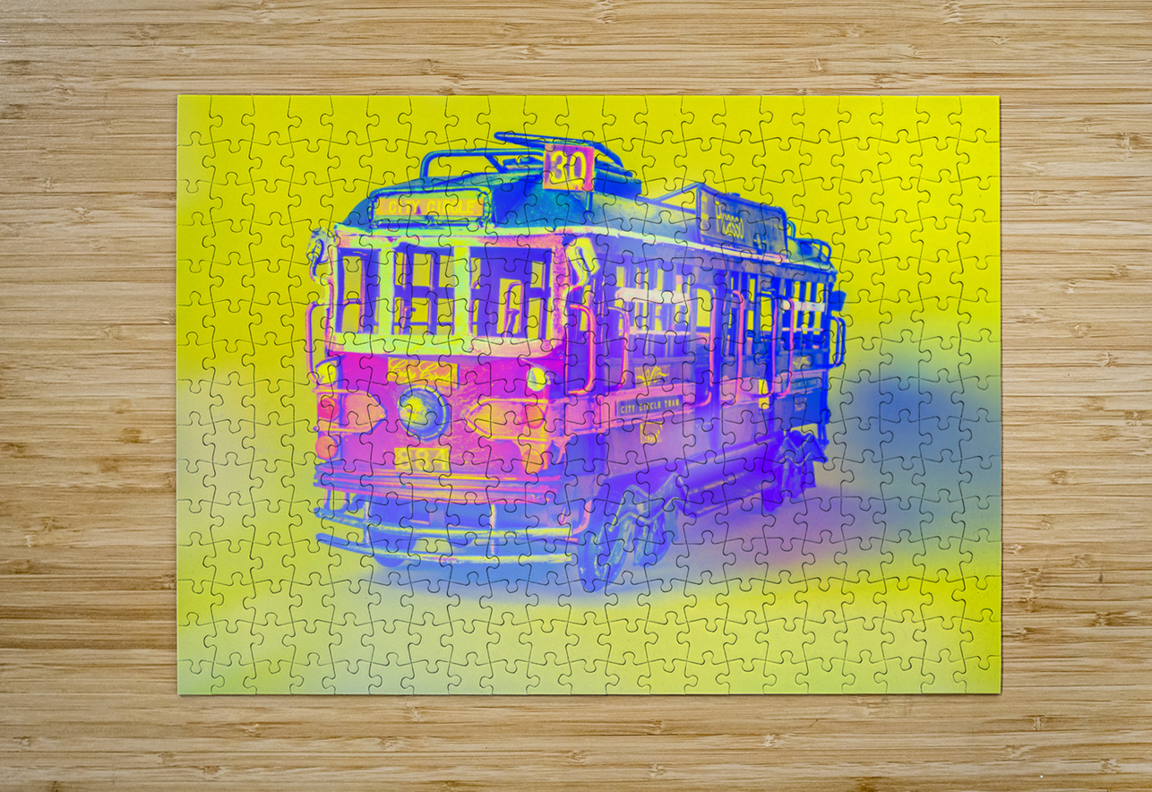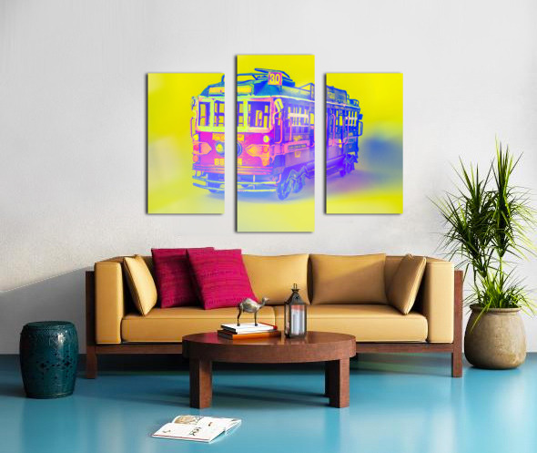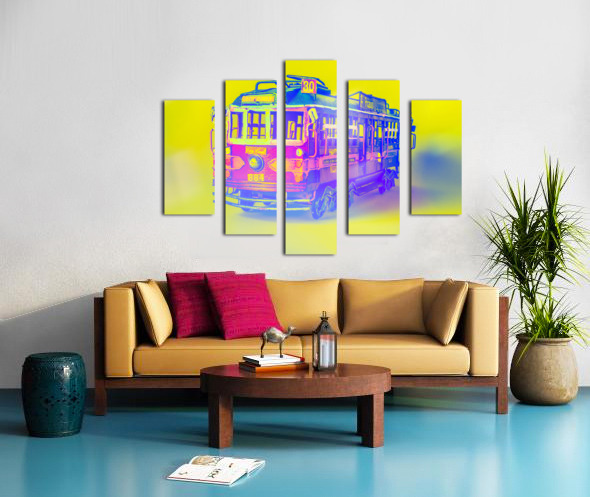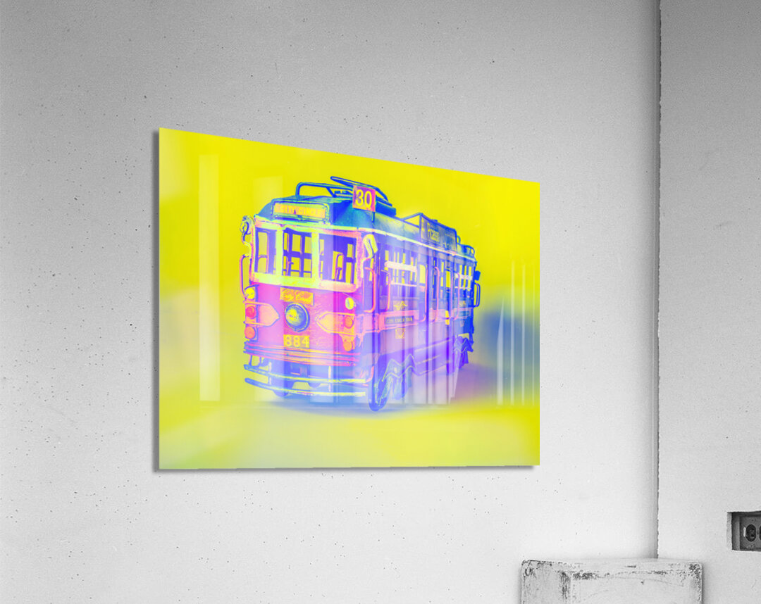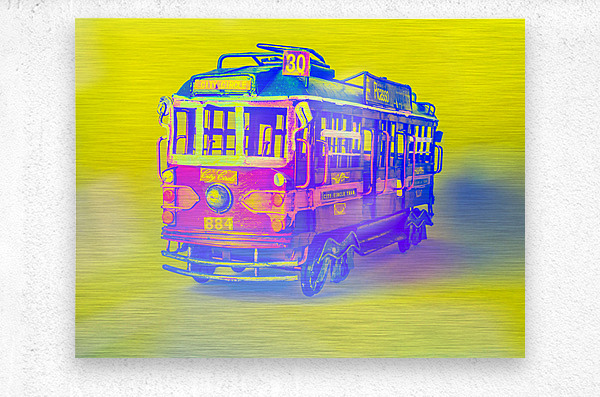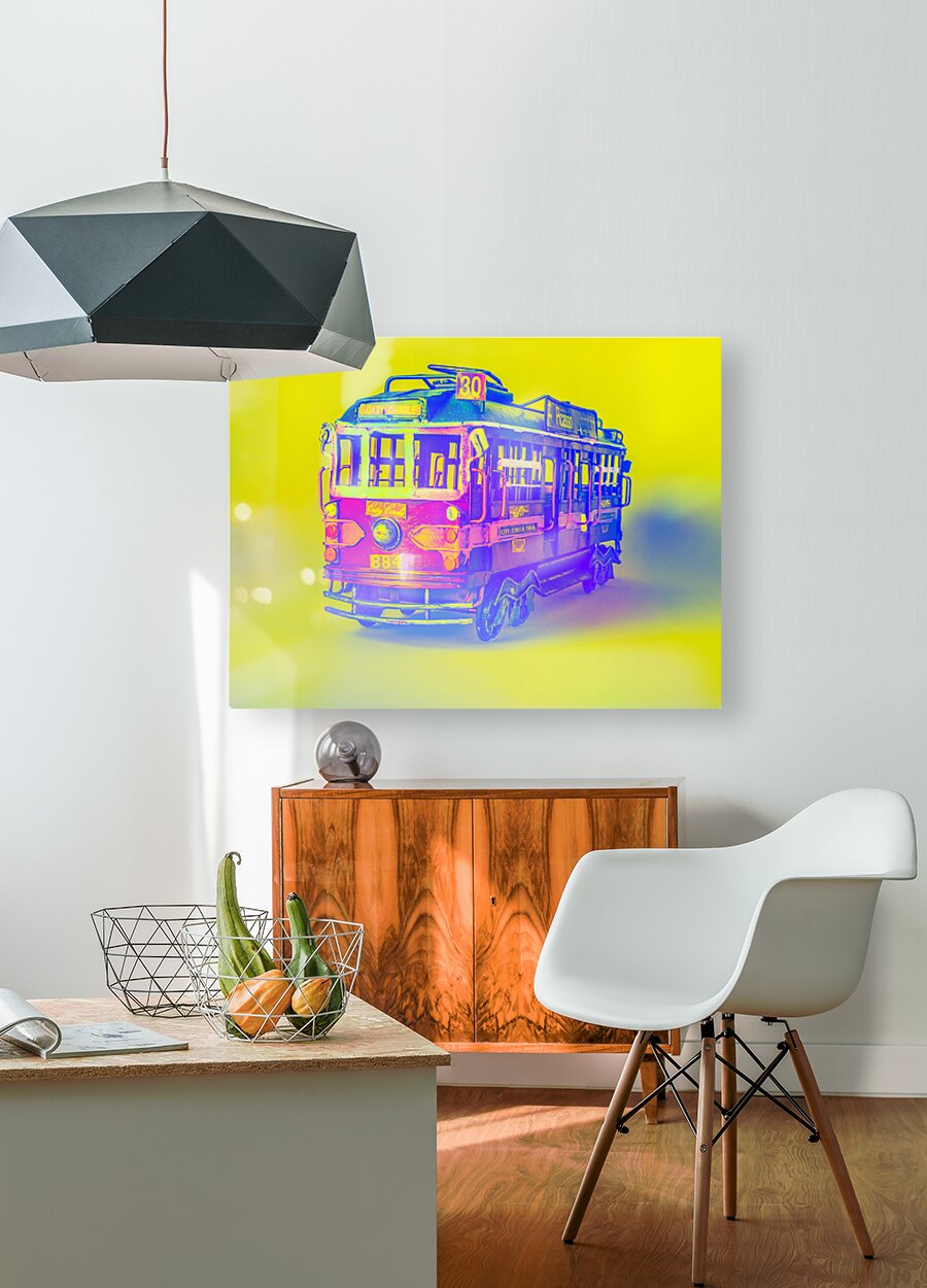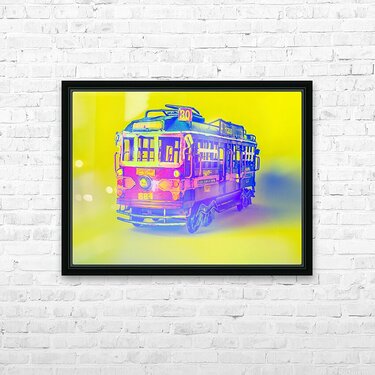Fine art design on a city circle tram cart flared in colours of commuter pop