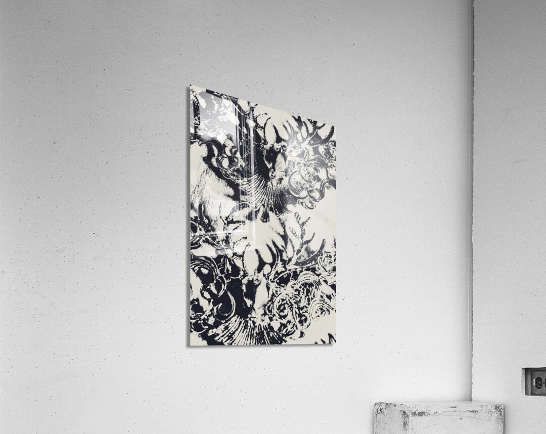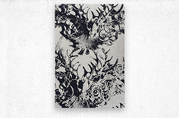 Vintage black and white art on wild horned mooses patterned with interesting shades and shadows. Halls of horned artwork