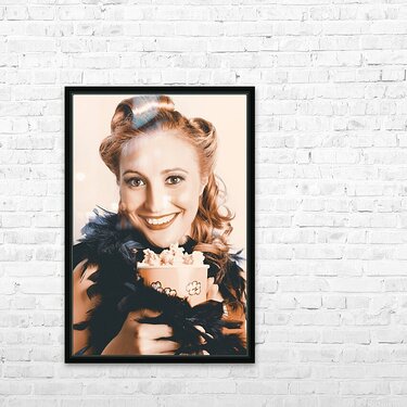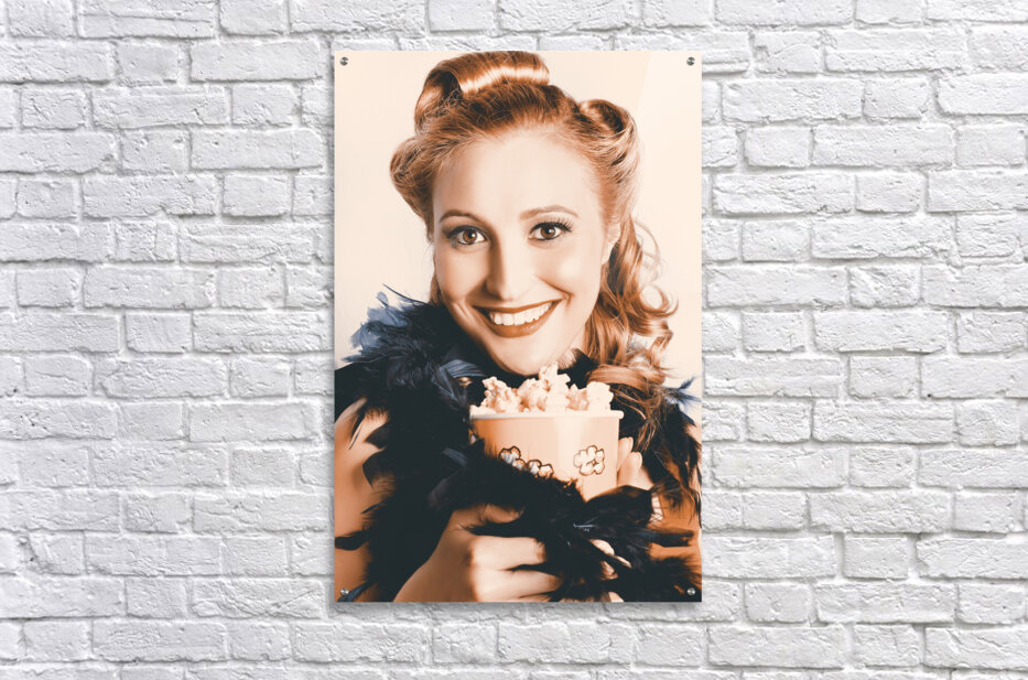 Fifties Pinup Woman Seeing Movie At Retro Cinema Picture Frame Printing
