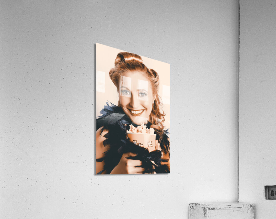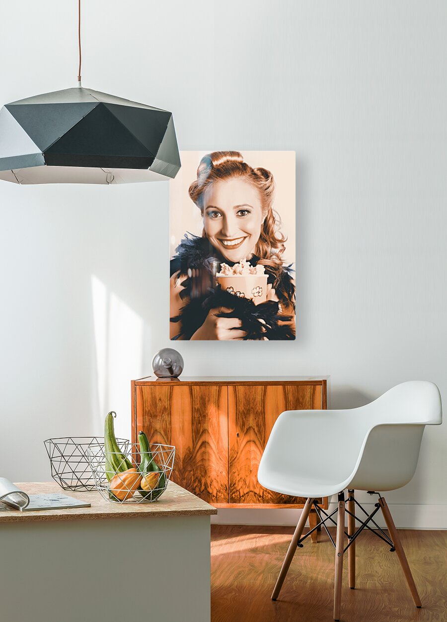 Get this artwork "Fifties Pinup Woman Seeing Movie At Retro Cinema" in a framed print.