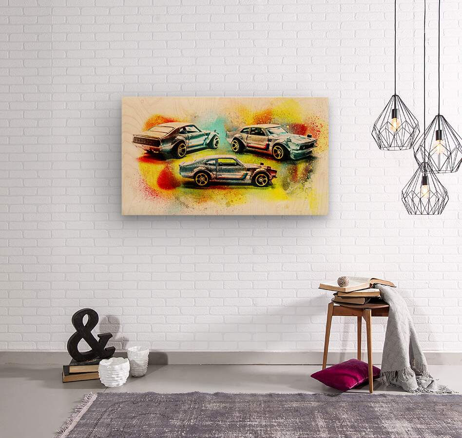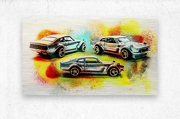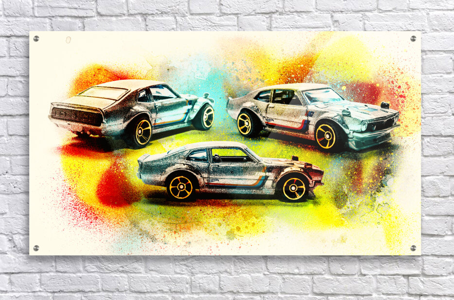 City street style with a toy Ford Maverick on grunge graffiti painted wall. Urbanized