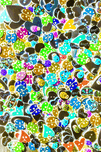 Pop art button bug still with wooden ladybirds and shabby hearts abstracted. Bugstraction
