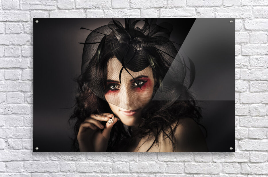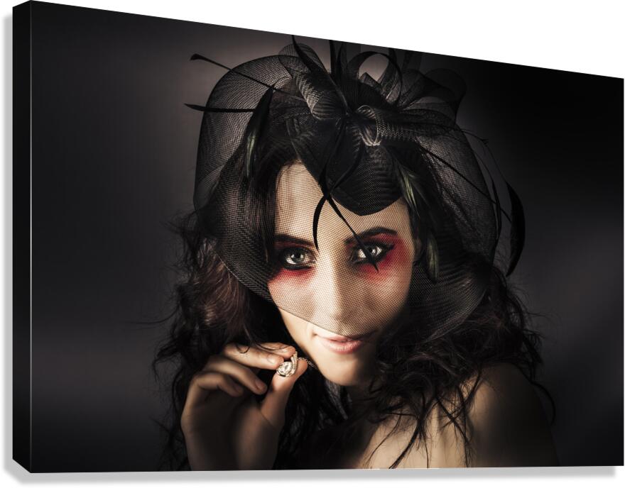 Dark Fashion Portrait Of A Beautiful Elegant Lady In Luxury Fascinator And Jewellery Necklace