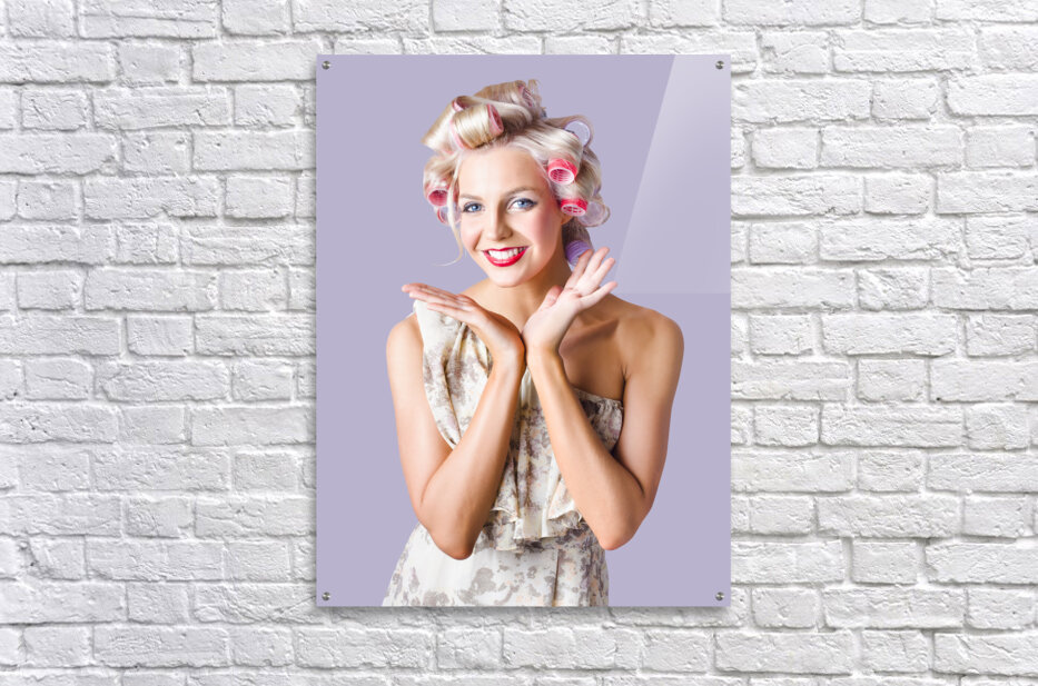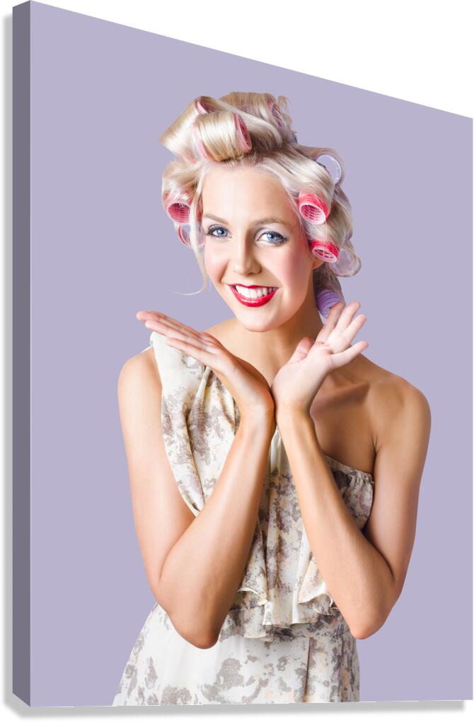 Woman with rollers in hair Picture Frame Printing