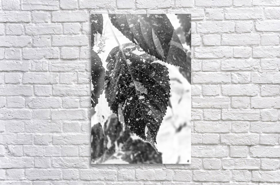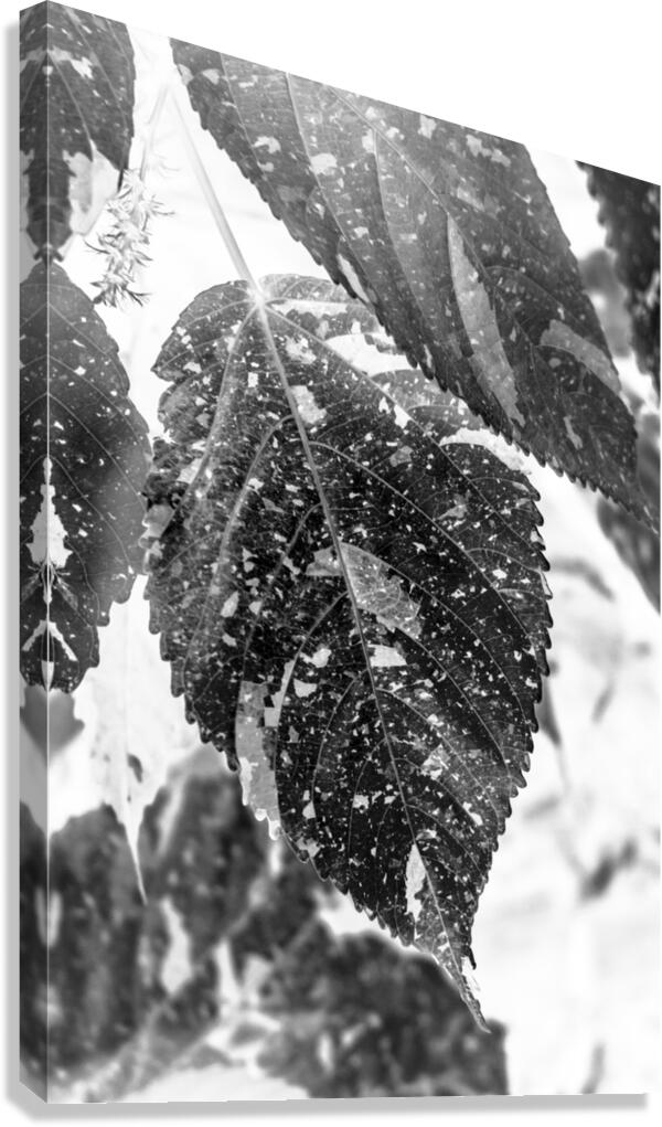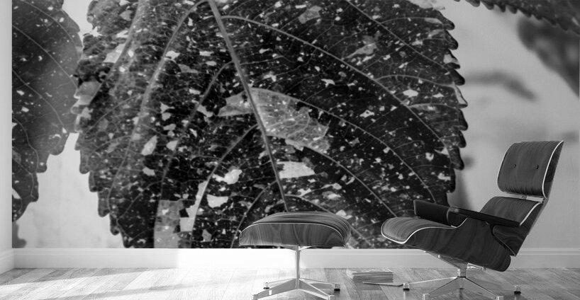 Black and white nature art on a abstract of leaves layered in ecological inverse