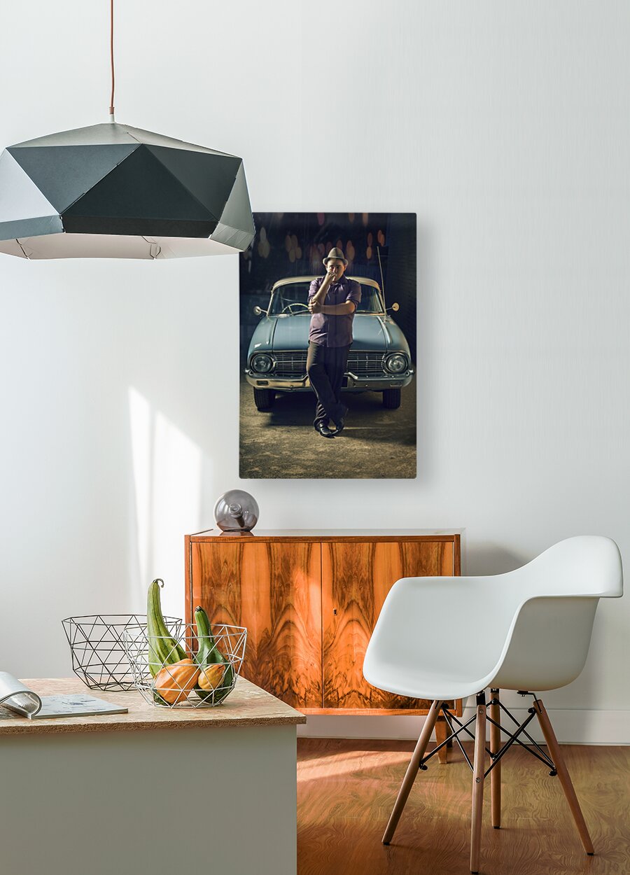 1950s private eye investigator with smoke on car Picture Frame Printing