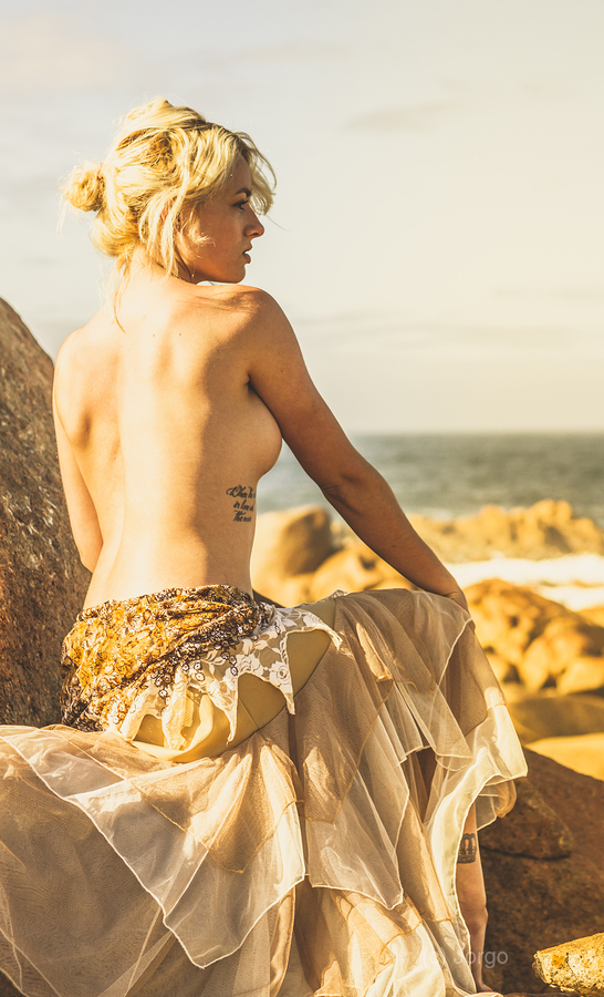 Fine art beauty portrait of a stunning beautiful woman relaxing in the sun of bare elegance