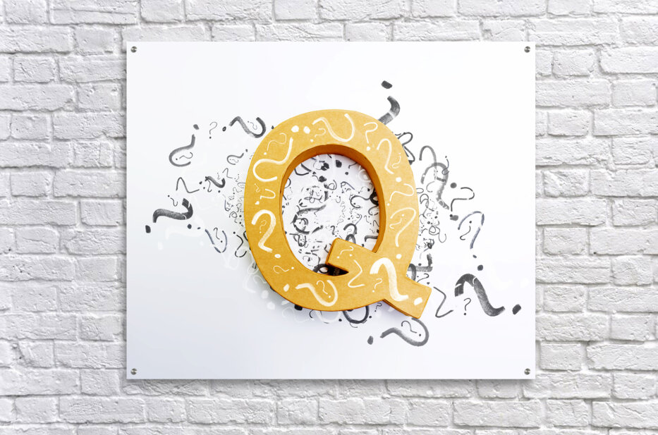 Questions in need of answers on white background Picture Frame Printing
