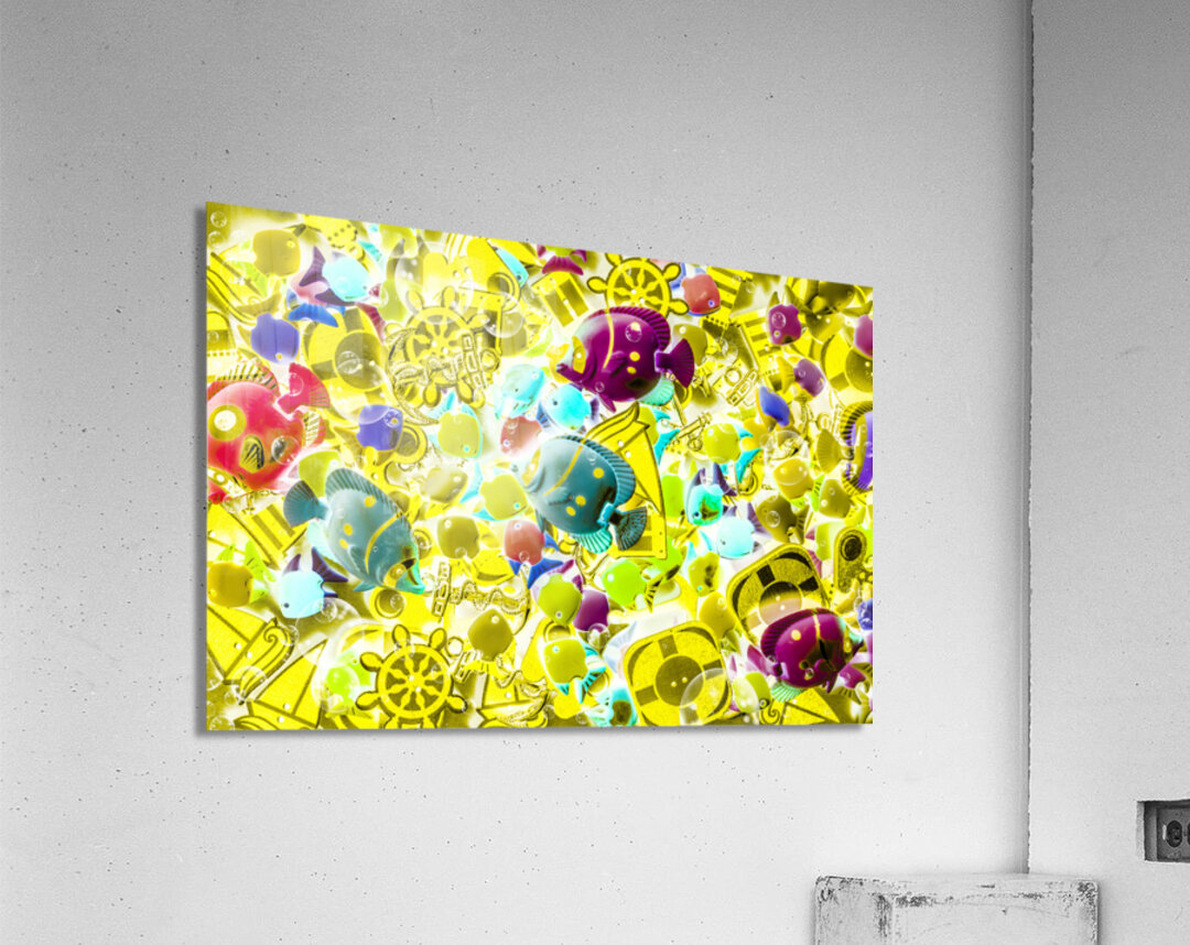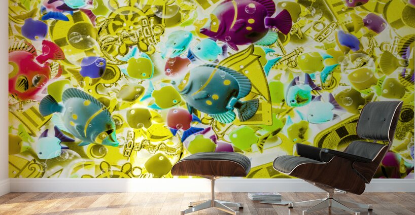Exotic tales of a creative maritime fairytale with fish abstracted by bubbles of oceanic elements. Story seas