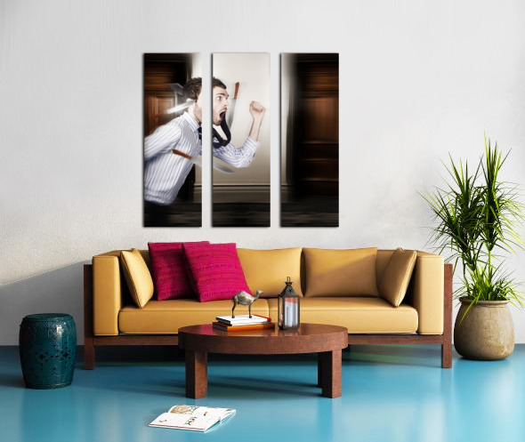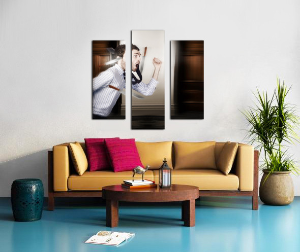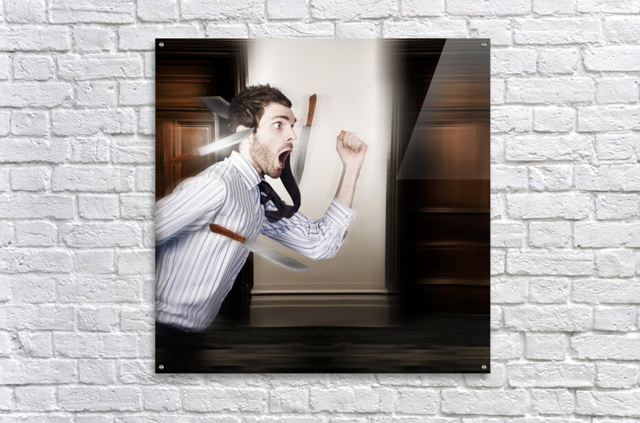 ABOUT THIS ARTWORK: CRAZY BUSINESSMAN RUNNING IN FEAR FROM DANGER