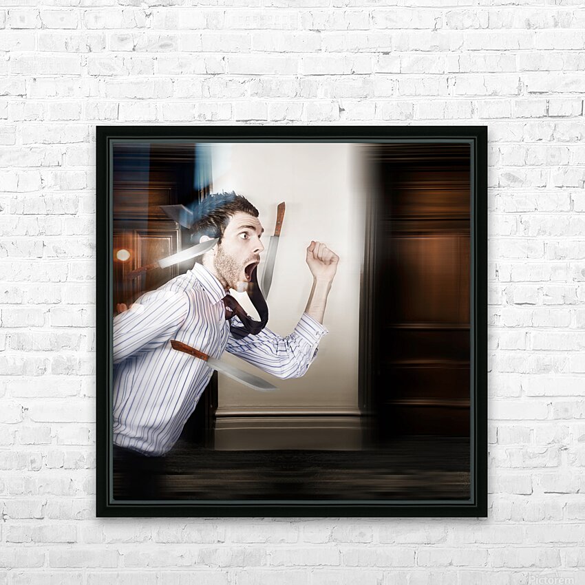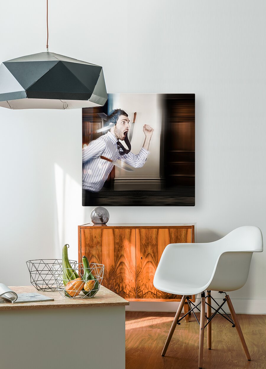 Get this artwork "Crazy businessman running in fear from danger" in a framed print.