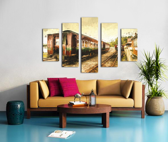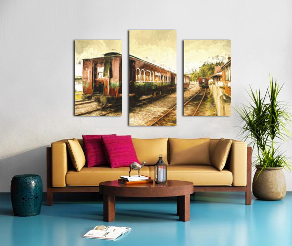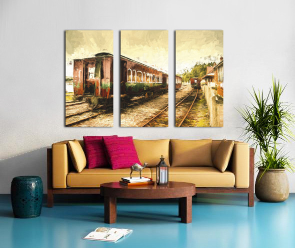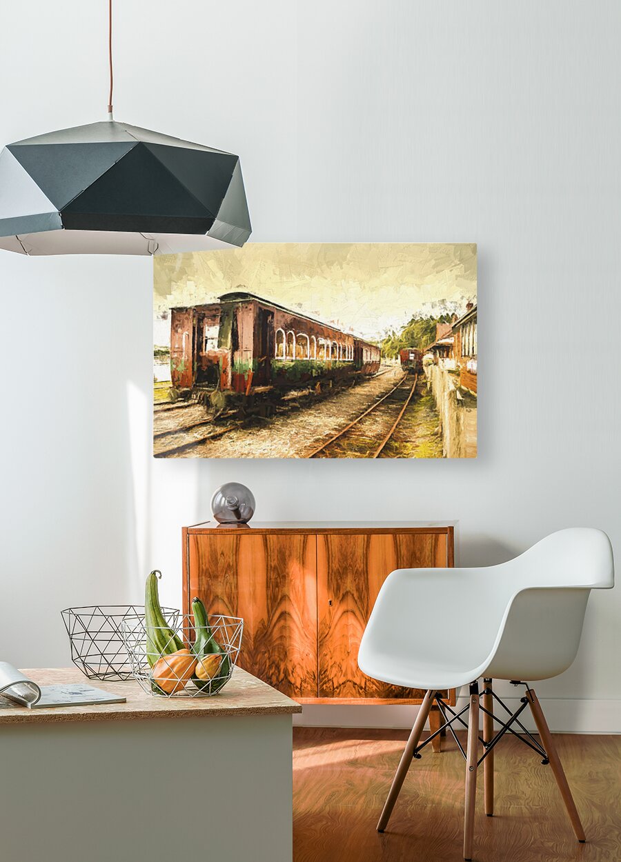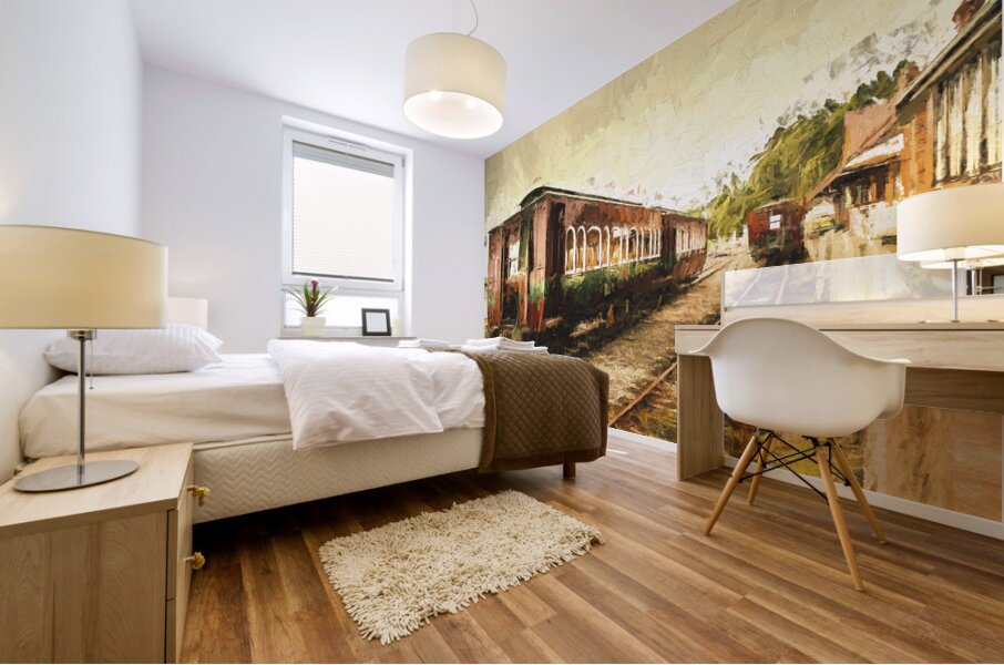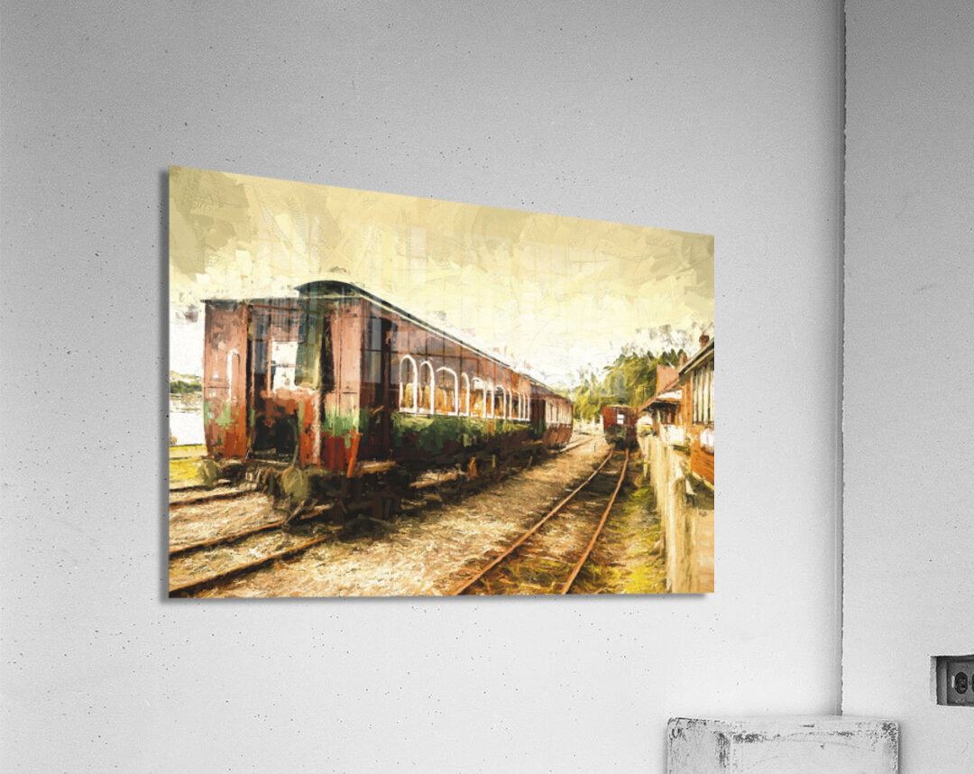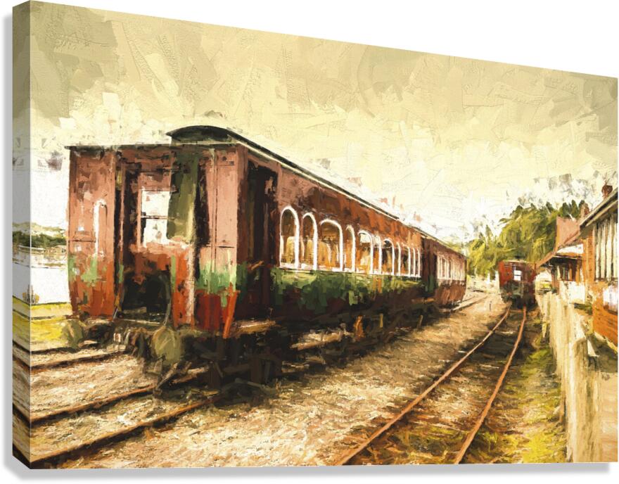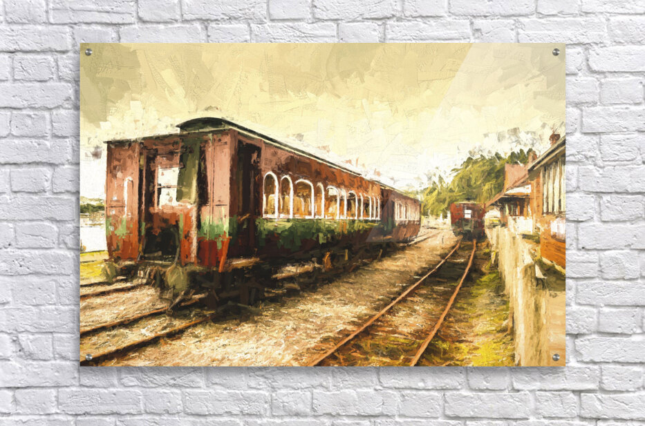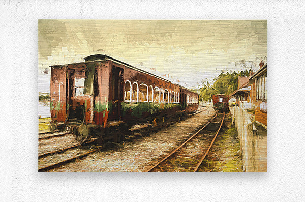 Creative abstract digital painting of trains at Strahan train station when on route to Queenstown on the West Coast wilderness tour. Tasmania Australia