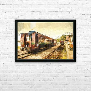 Creative abstract digital painting of trains at Strahan train station when on route to Queenstown on the West Coast wilderness tour. Tasmania Australi...[+]
