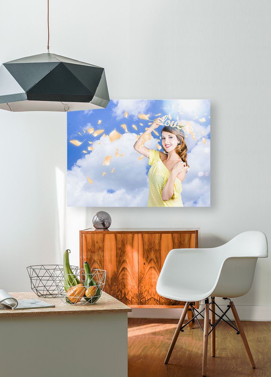 ABOUT THIS ARTWORK: ROMANTIC WOMAN DREAMING OF A SKY FILLED ROMANCE