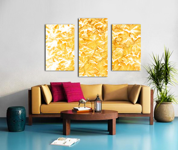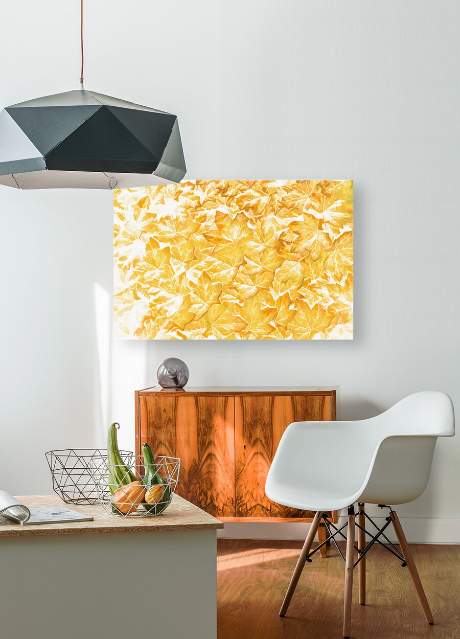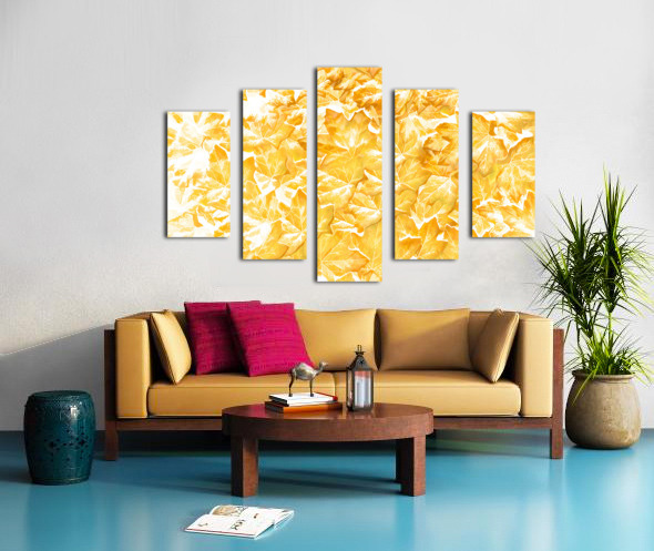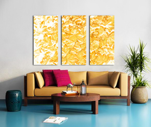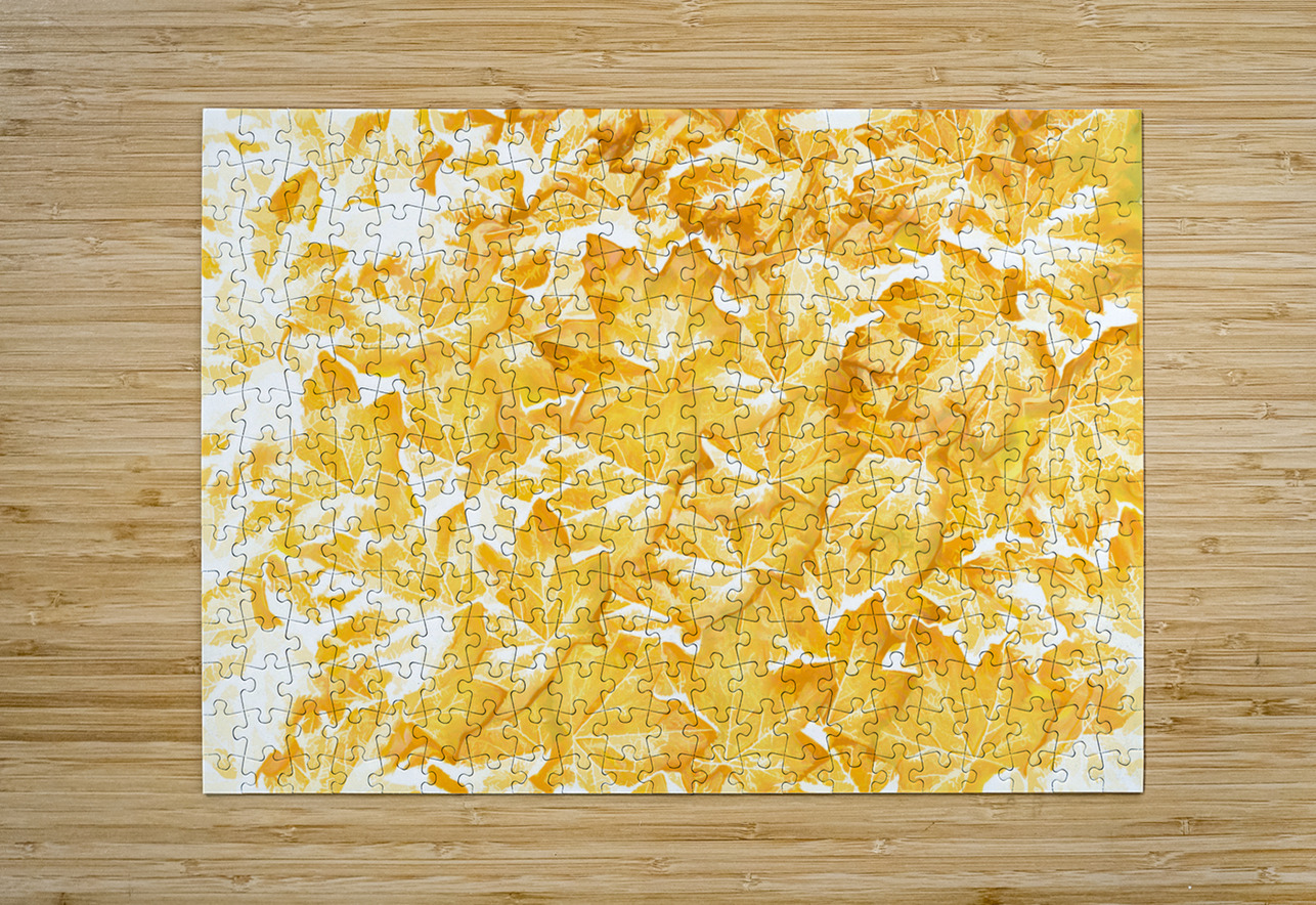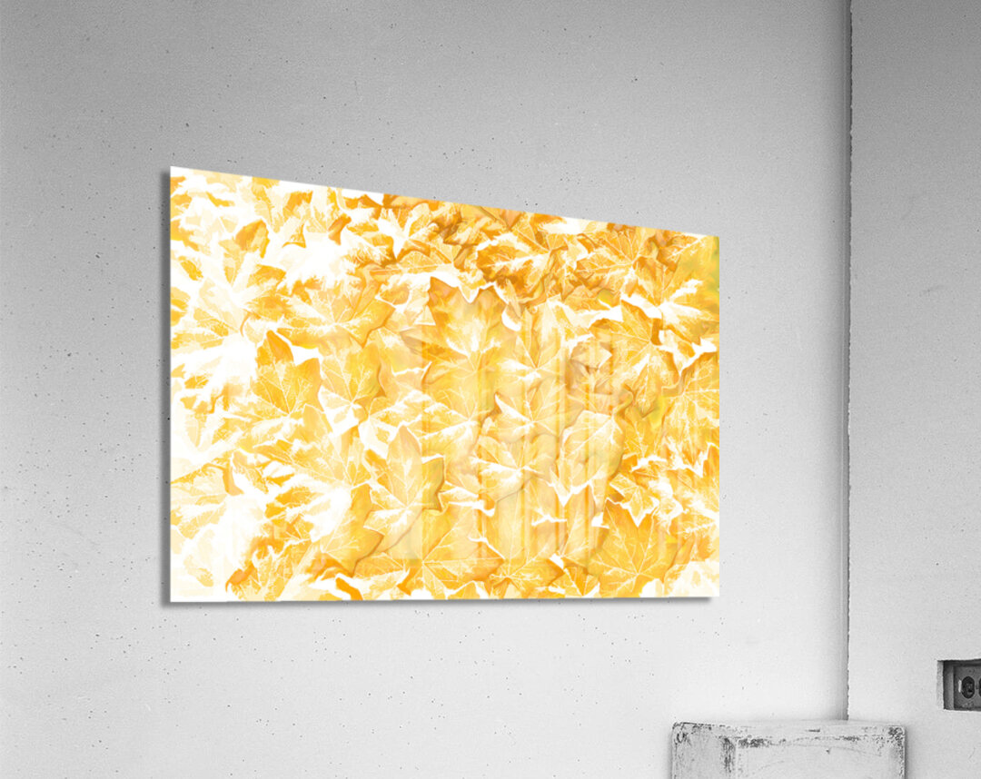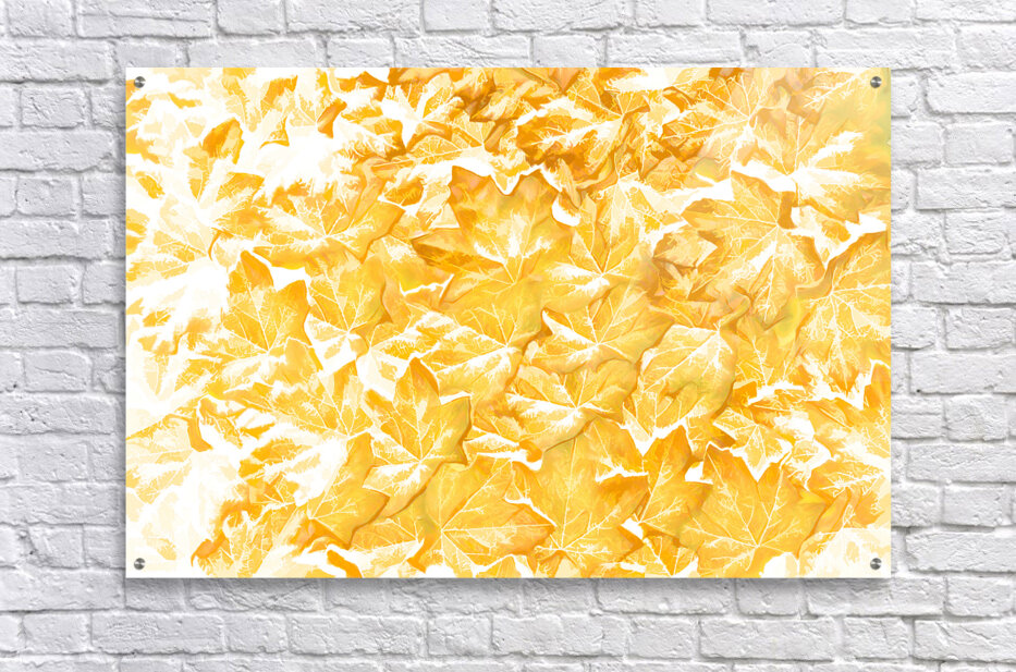 White yellow and orange abstraction on a natural release of maple leaves captured in contemporary