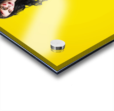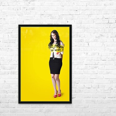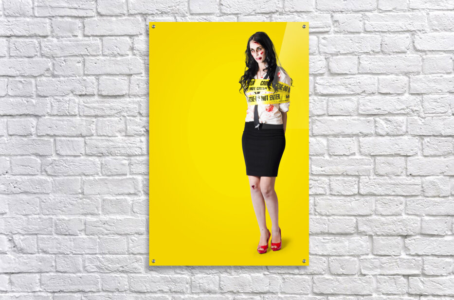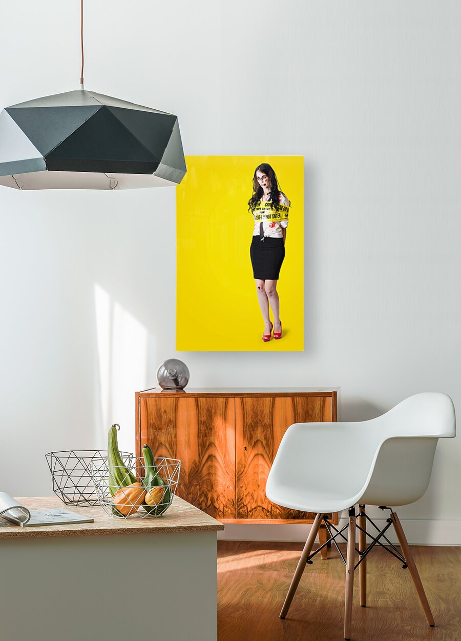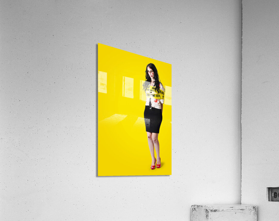 Creepy homicide girl standing undead on yellow Picture Frame Printing