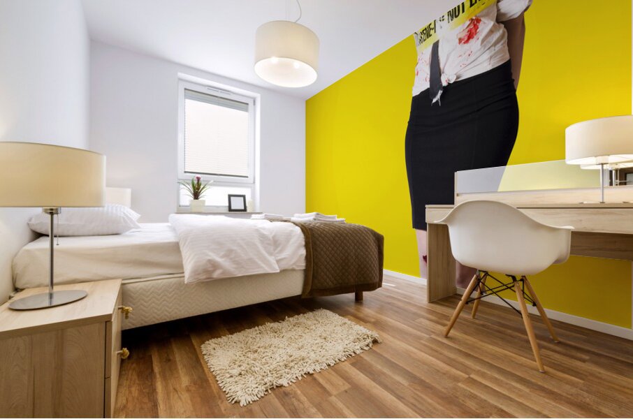 ABOUT THIS ARTWORK: CREEPY HOMICIDE GIRL STANDING UNDEAD ON YELLOW
