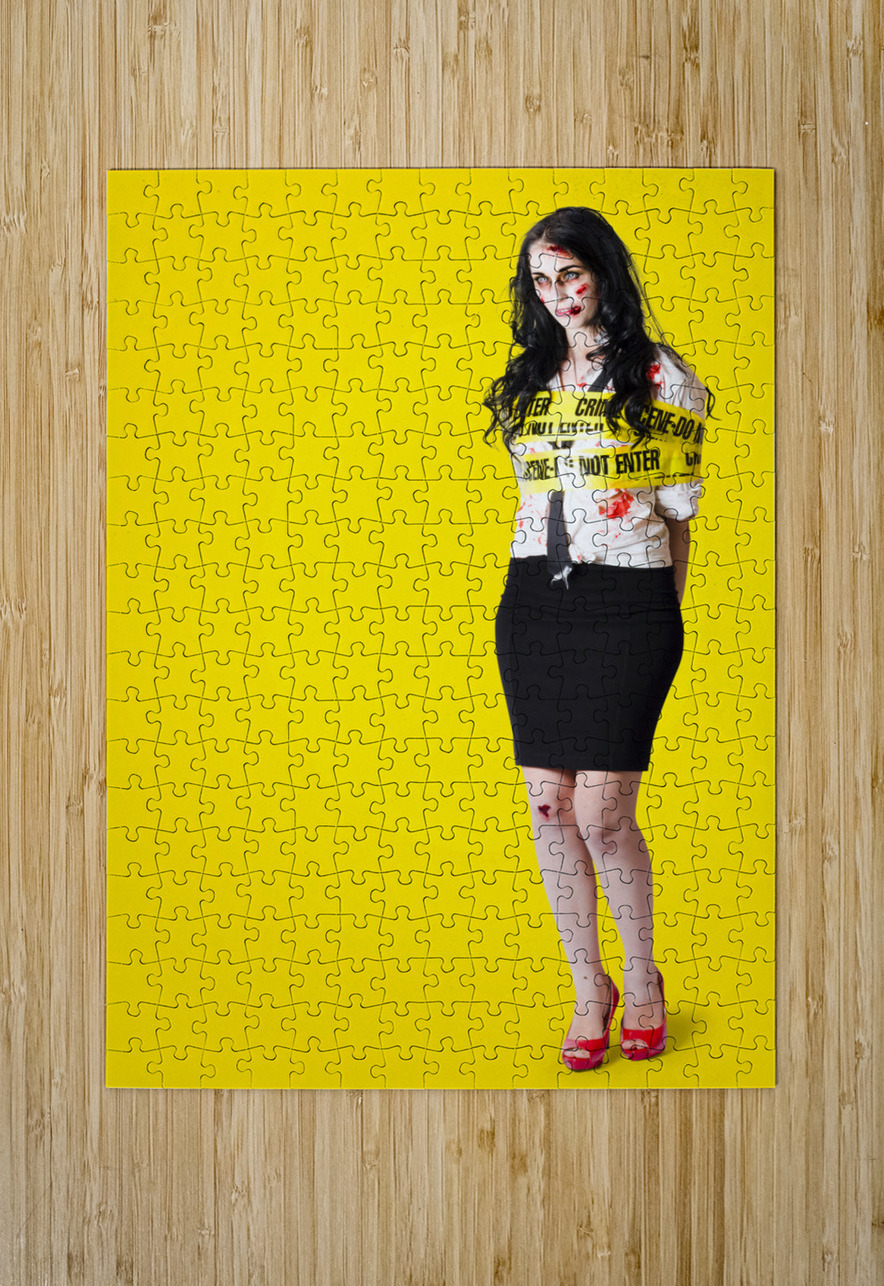 Creepy homicide girl standing undead on yellow Jorgo Puzzle printing