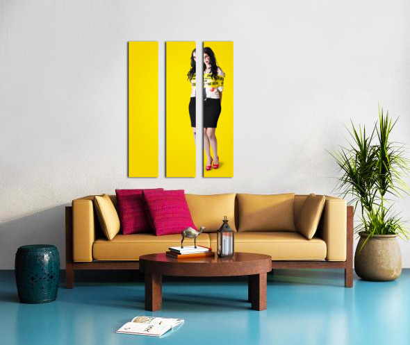 Get this artwork "Creepy homicide girl standing undead on yellow" in a framed print.