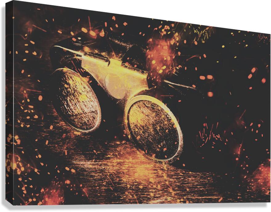 Artistic workshop still-life on a boilermaker mask sprayed by sparks of creative design. Ignite and inspire