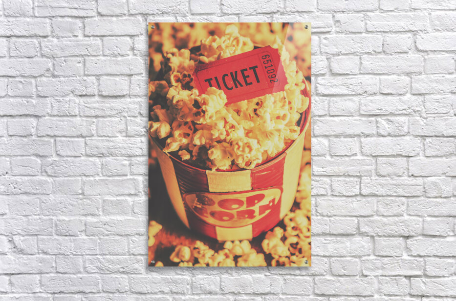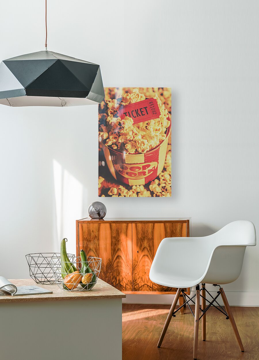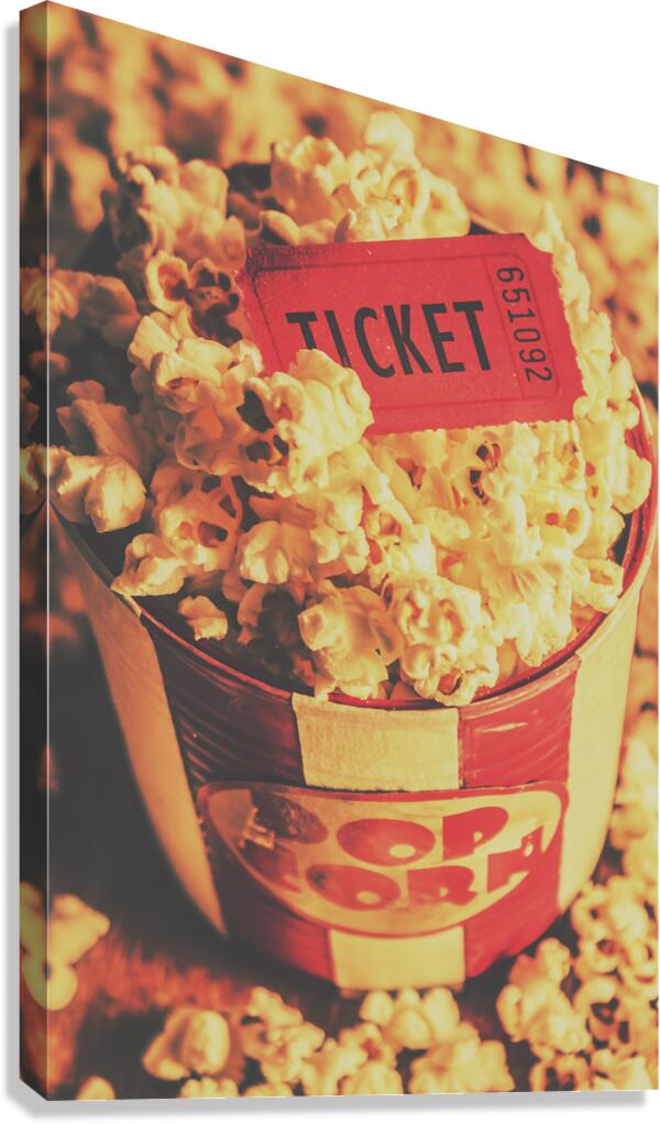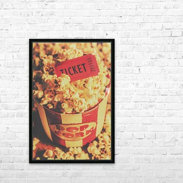 Get this artwork "Retro film stub and movie popcorn" in a framed print.