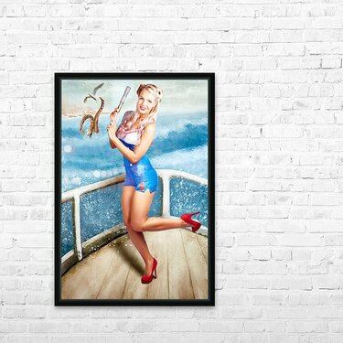 Beautiful Pinup Woman On Sightseeing Travel Cruise Picture Frame Printing