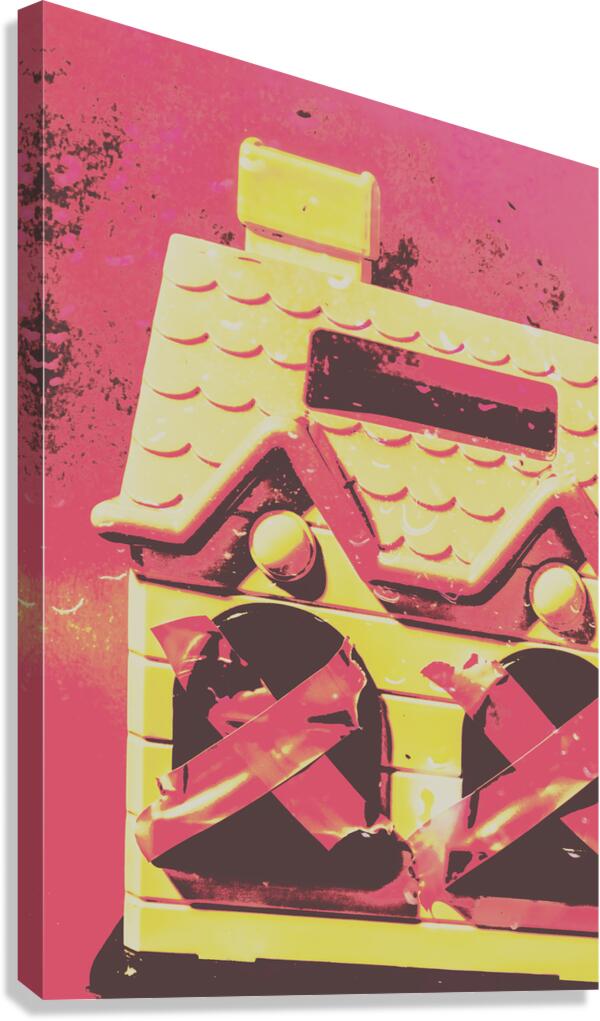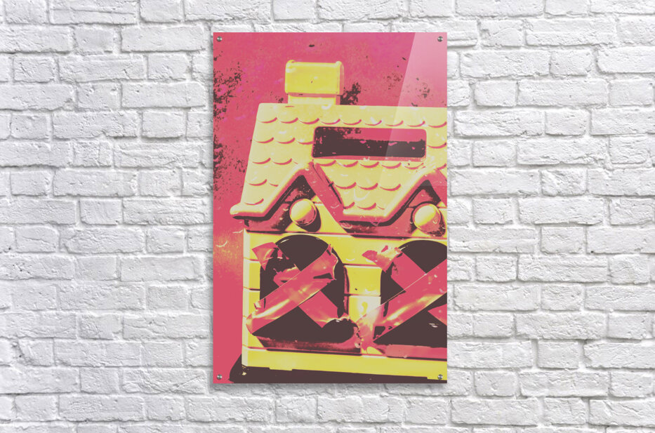 Scary scene of domestic terror with a dollhouse boarded up with taped windows. The abuse epidemic