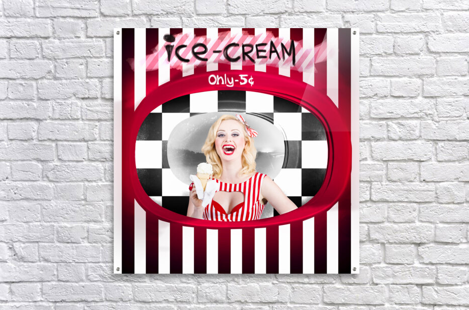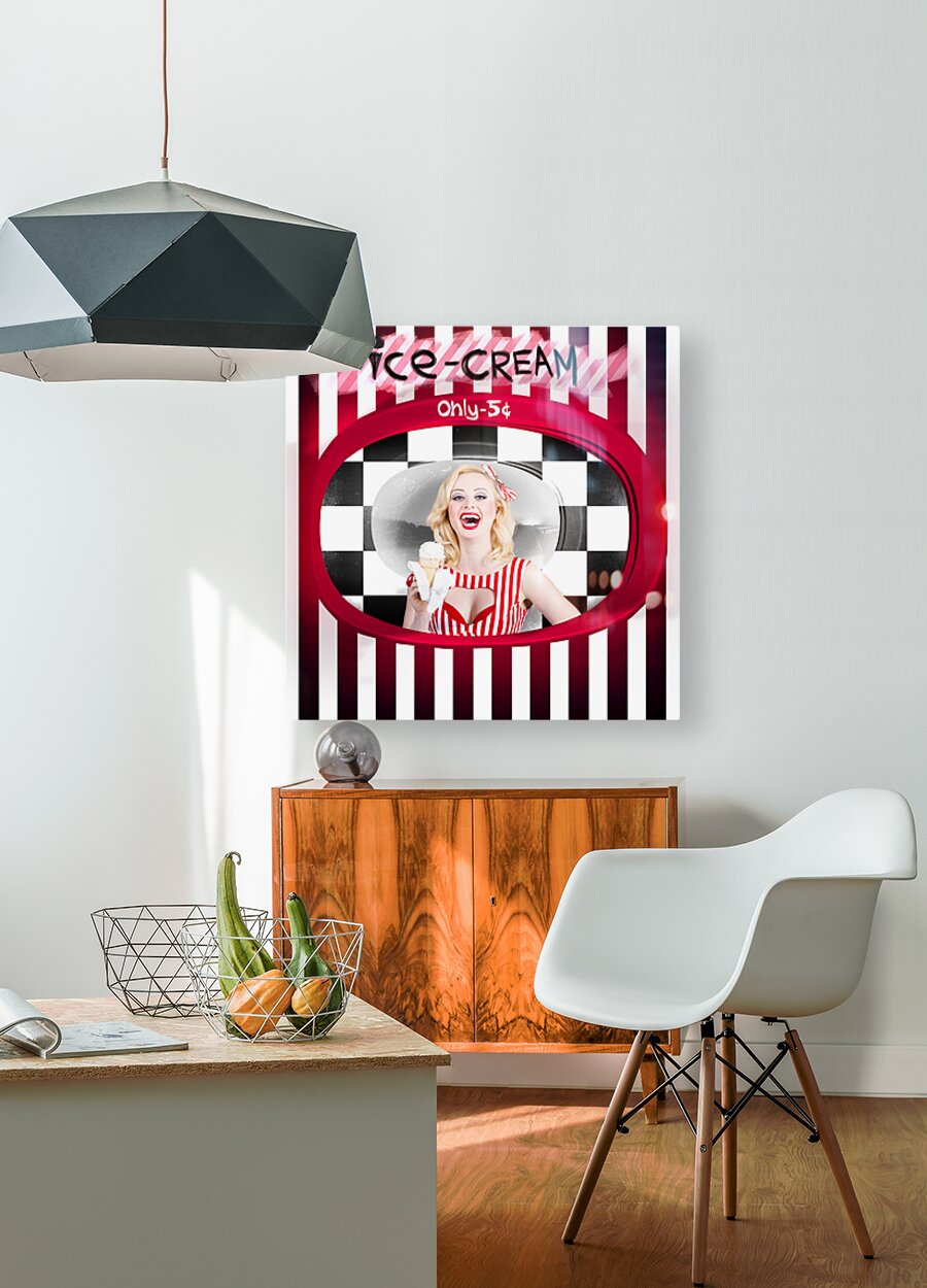 ABOUT THIS ARTWORK: BEAUTIFUL BLONDE WOMAN SERVING ICE CREAM