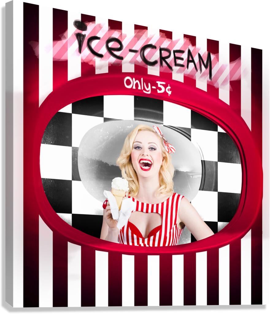 Get this artwork "Beautiful blonde woman serving ice cream" in a framed print.