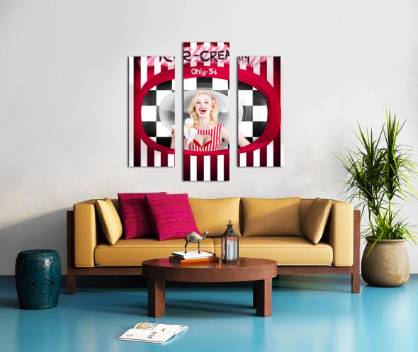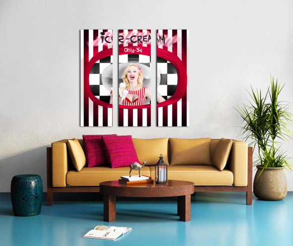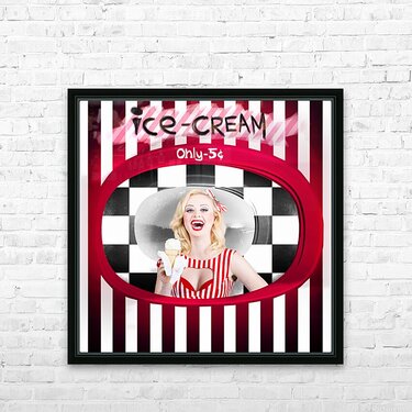 Beautiful blonde woman serving ice cream Frame print