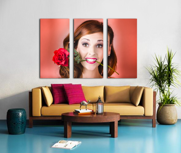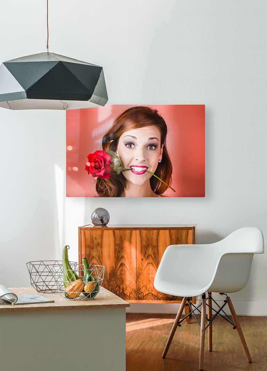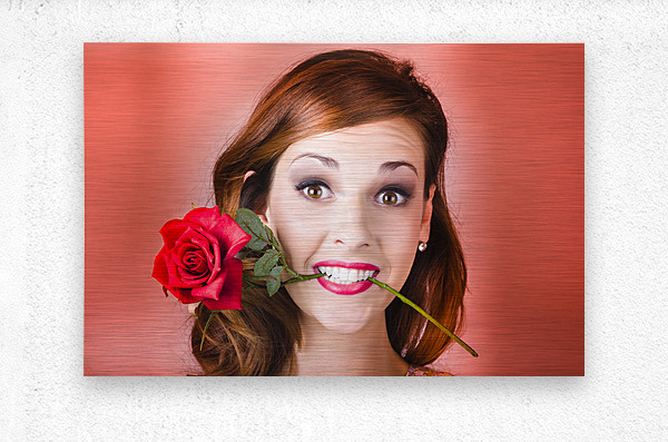 ABOUT THIS ARTWORK: WOMAN GRIPPING RED ROSE BETWEEN HER TEETH