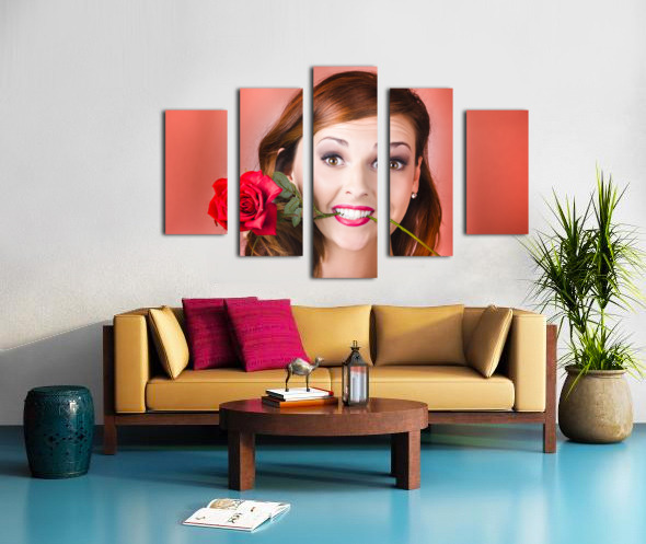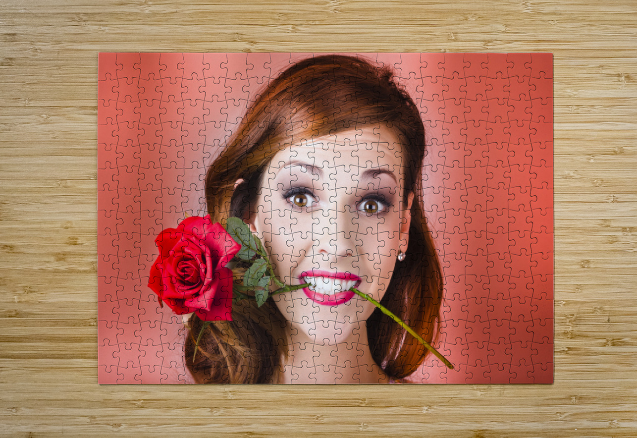 Woman gripping red rose between her teeth Jorgo Puzzle printing