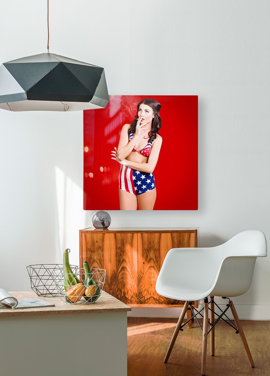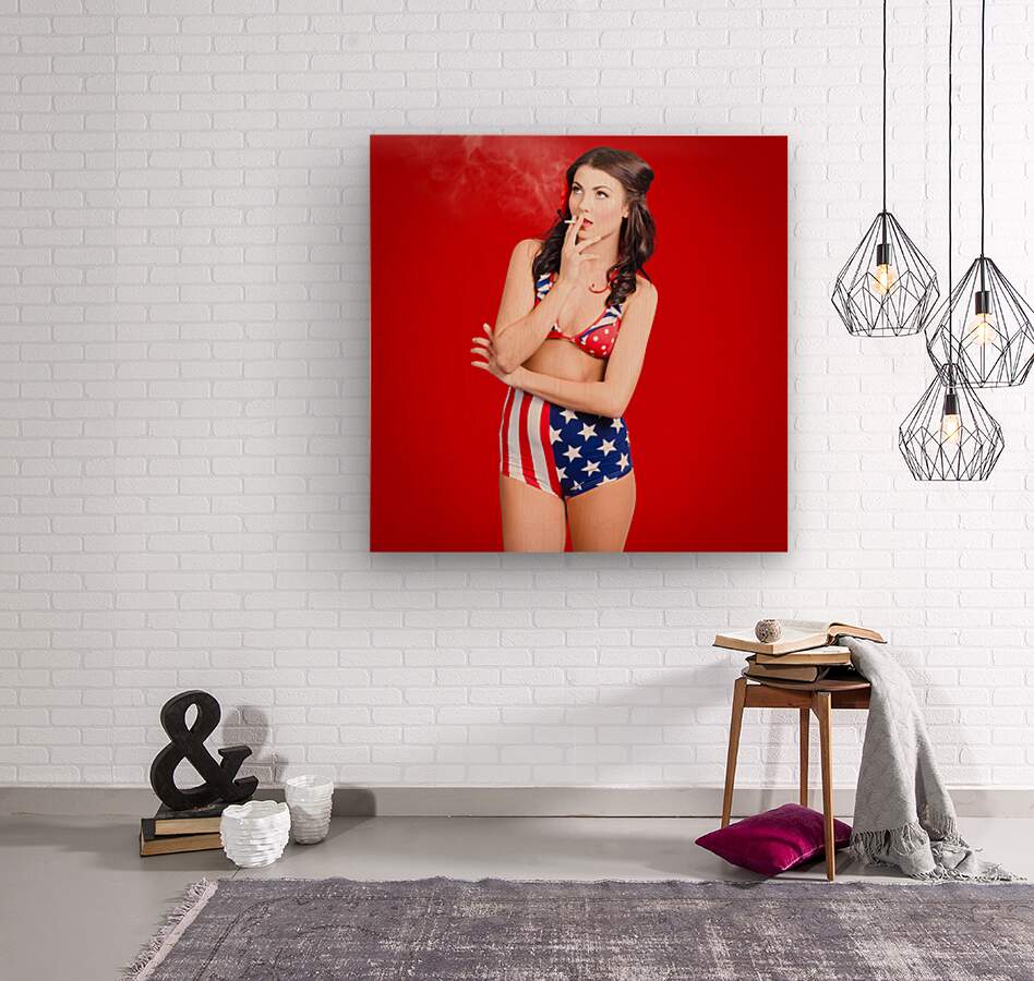 Attractive USA pinup woman smoking  Wood print