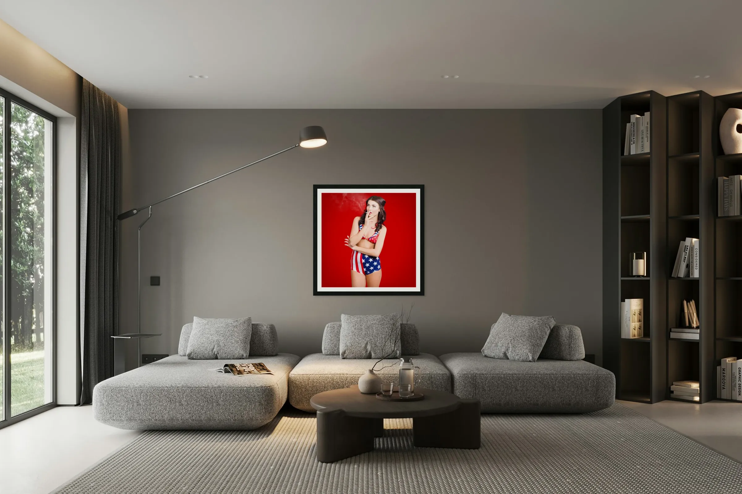 Attractive USA pinup woman smoking Frame print