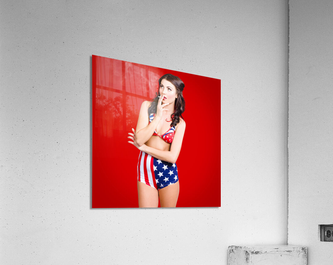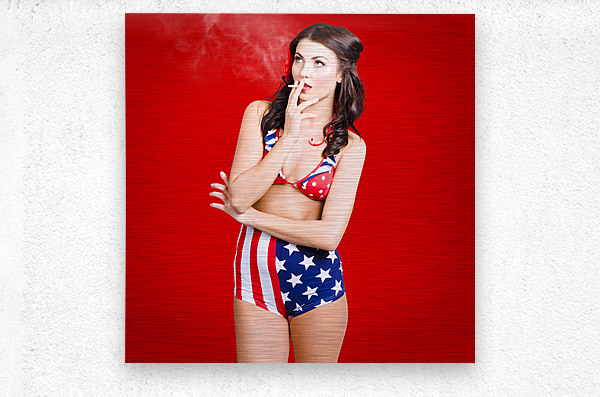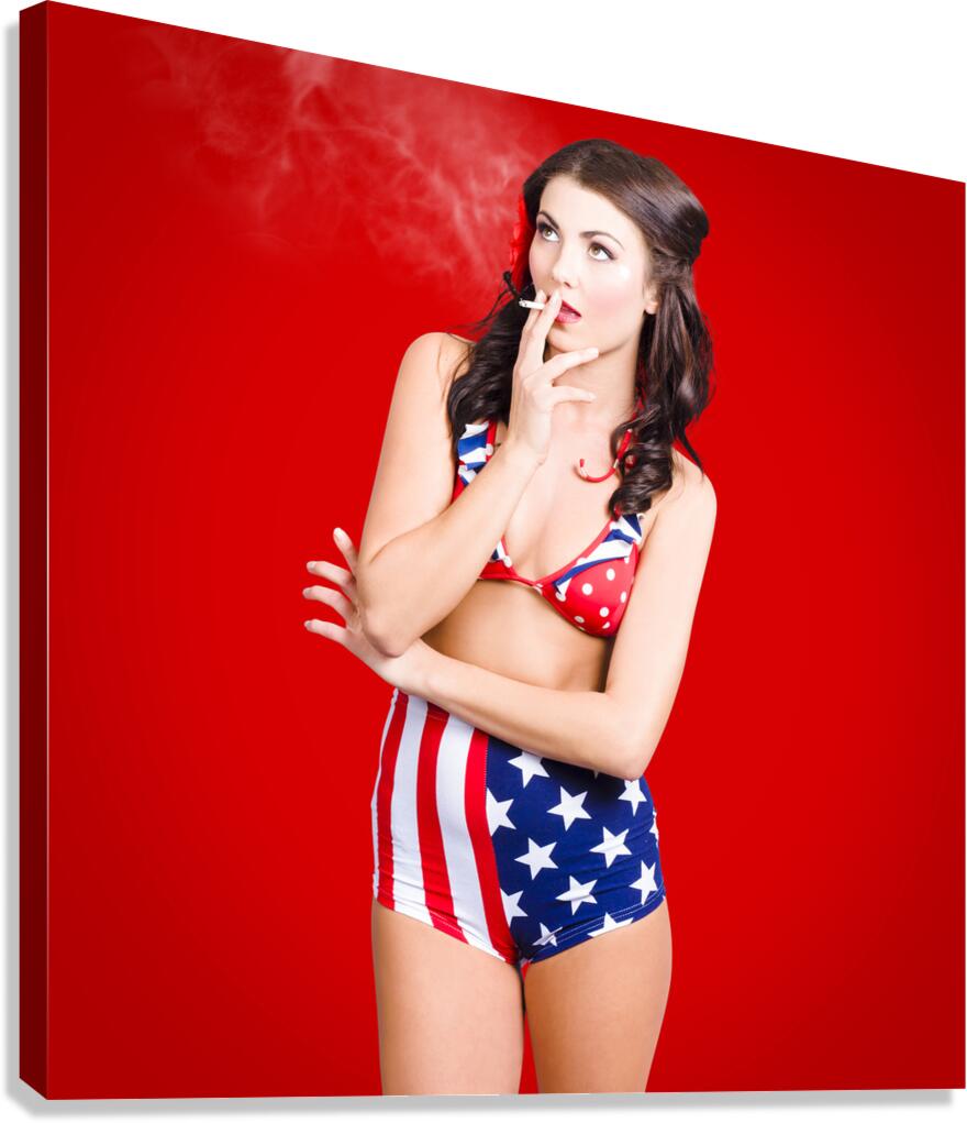 Get this artwork "Attractive USA pinup woman smoking" in a framed print.