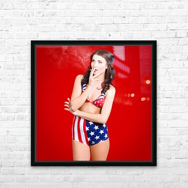Attractive USA pinup woman smoking Picture Frame Printing