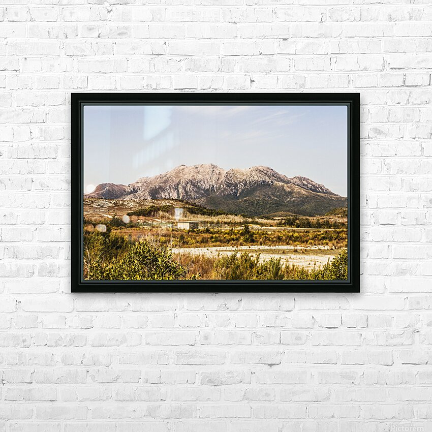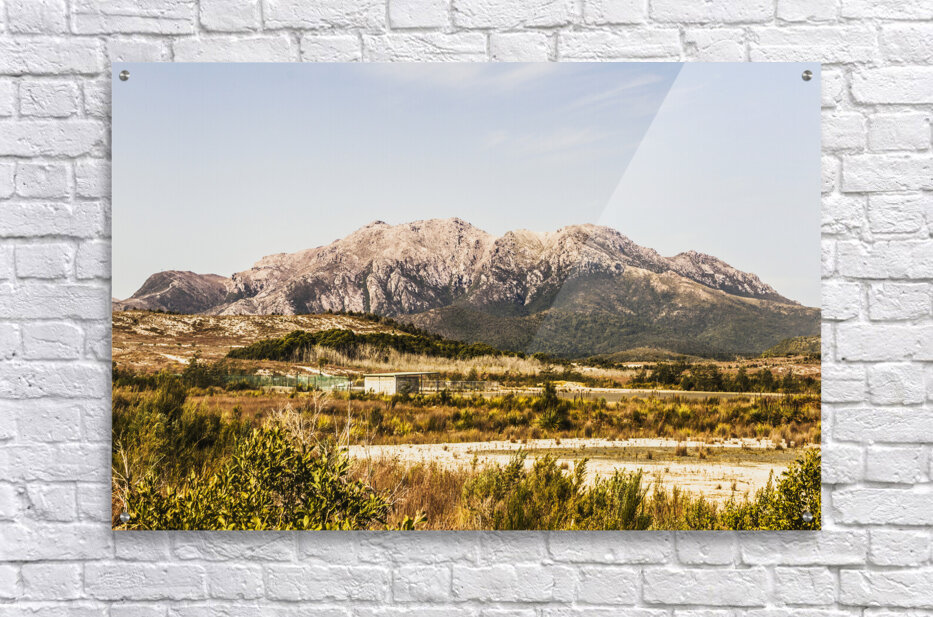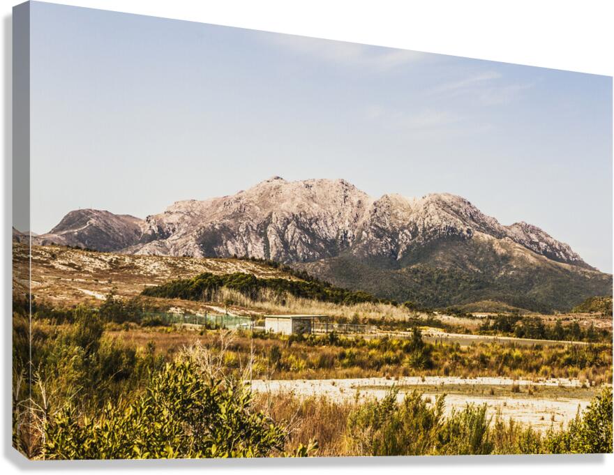 Splendid nature landscape on a range of moon-esque rugged mountains and barren grasslands. Queenstown Airport West Coast Tasmania Australia