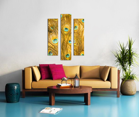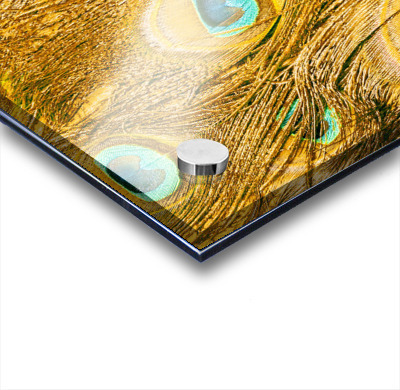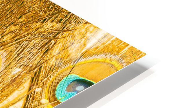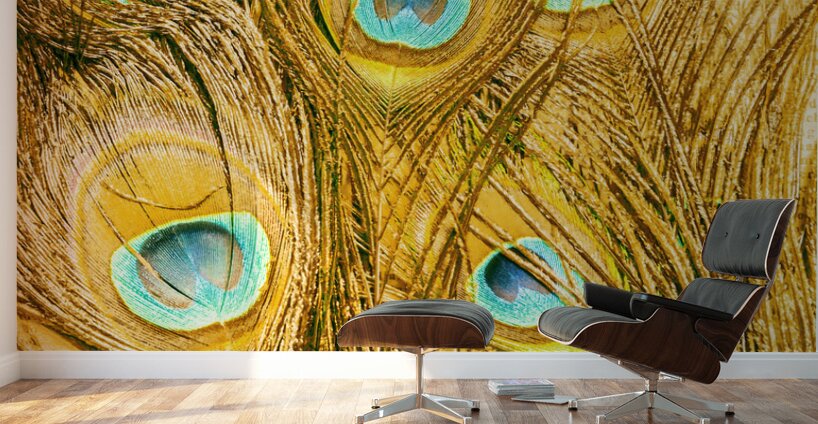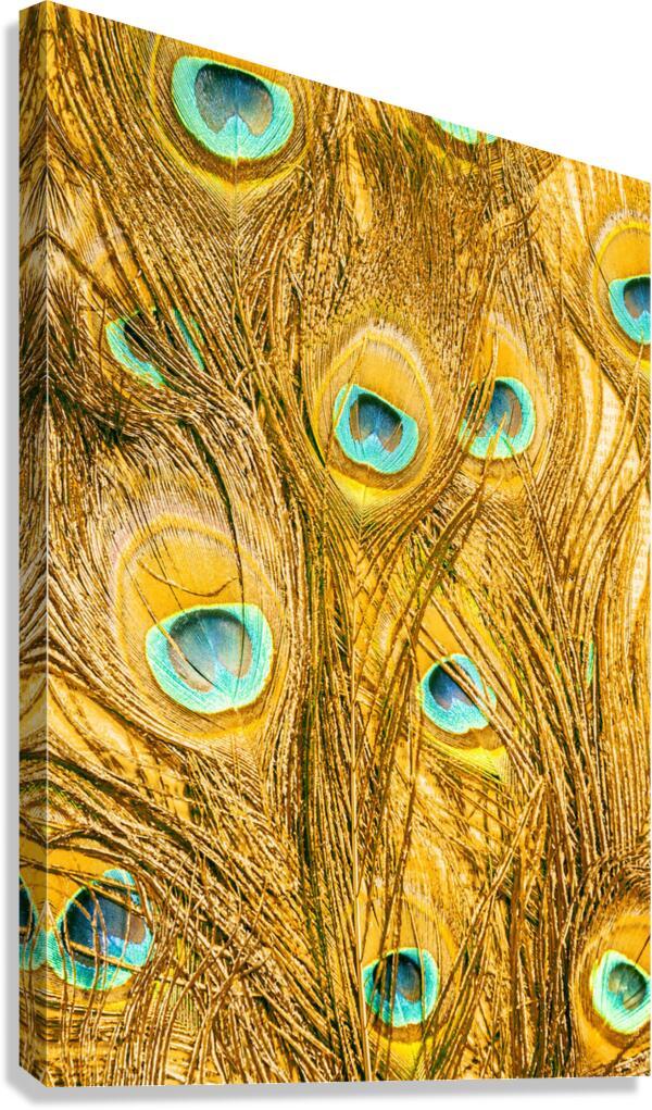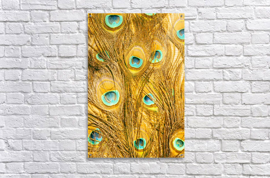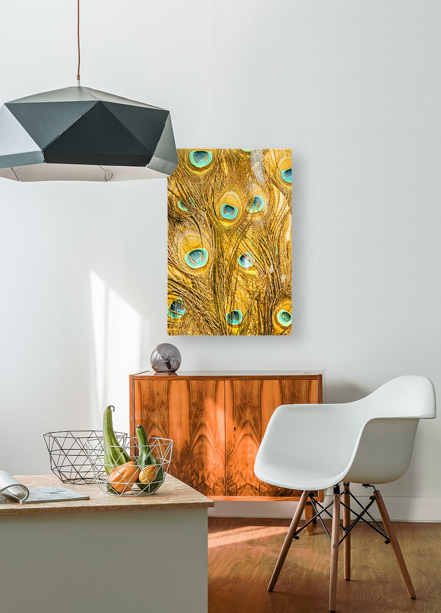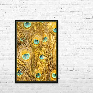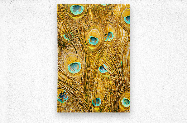 Natural fine art on a background of peacock feathers layered in exotic colours