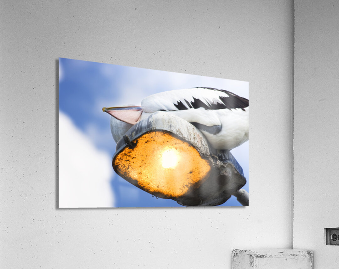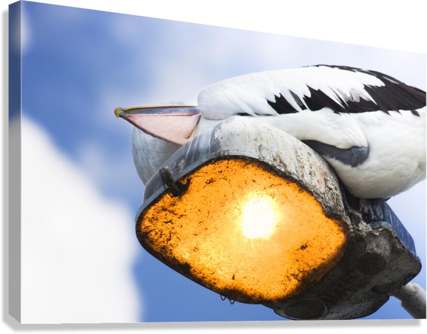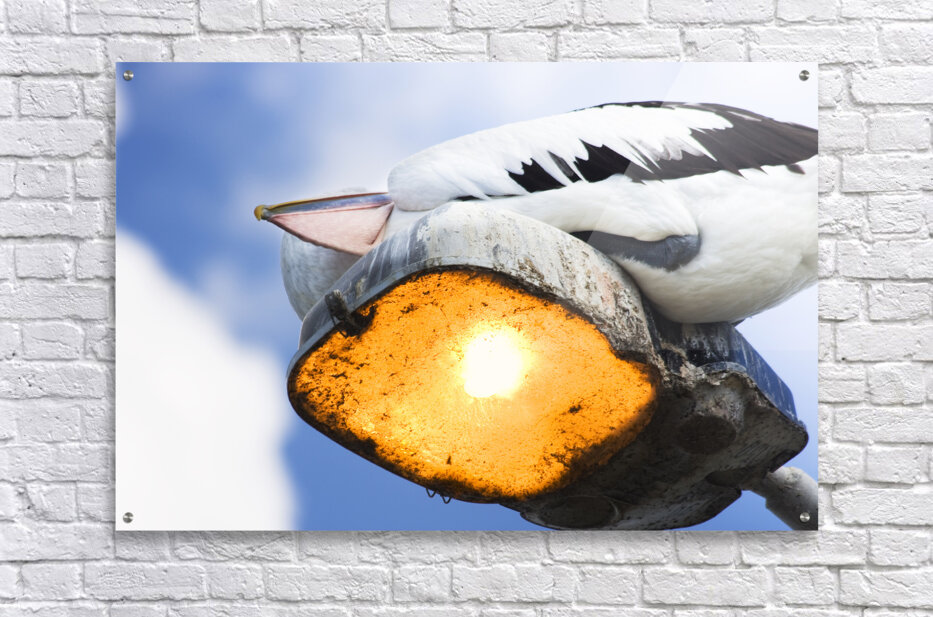 A Pelican Takes A Summertime Nap On A Illuminated Light Post During Summer Break