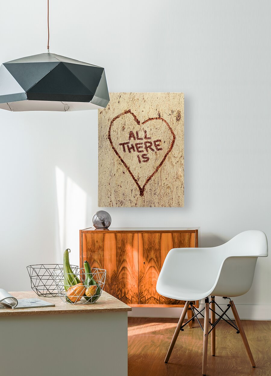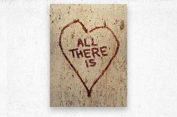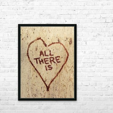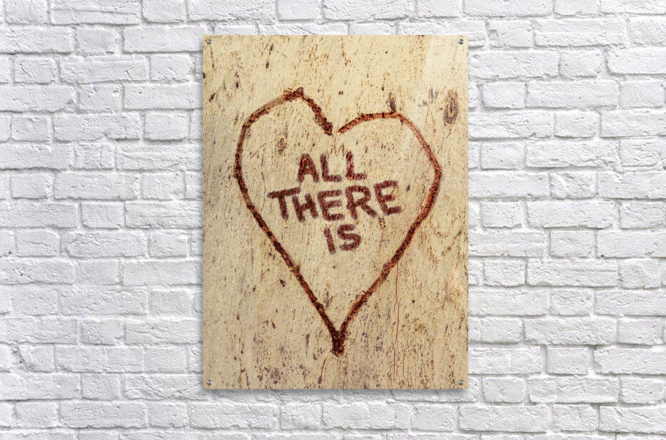 Tree trunk with love heart shaped engraved into the bark with the quote All There Is